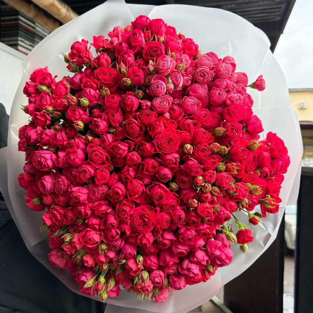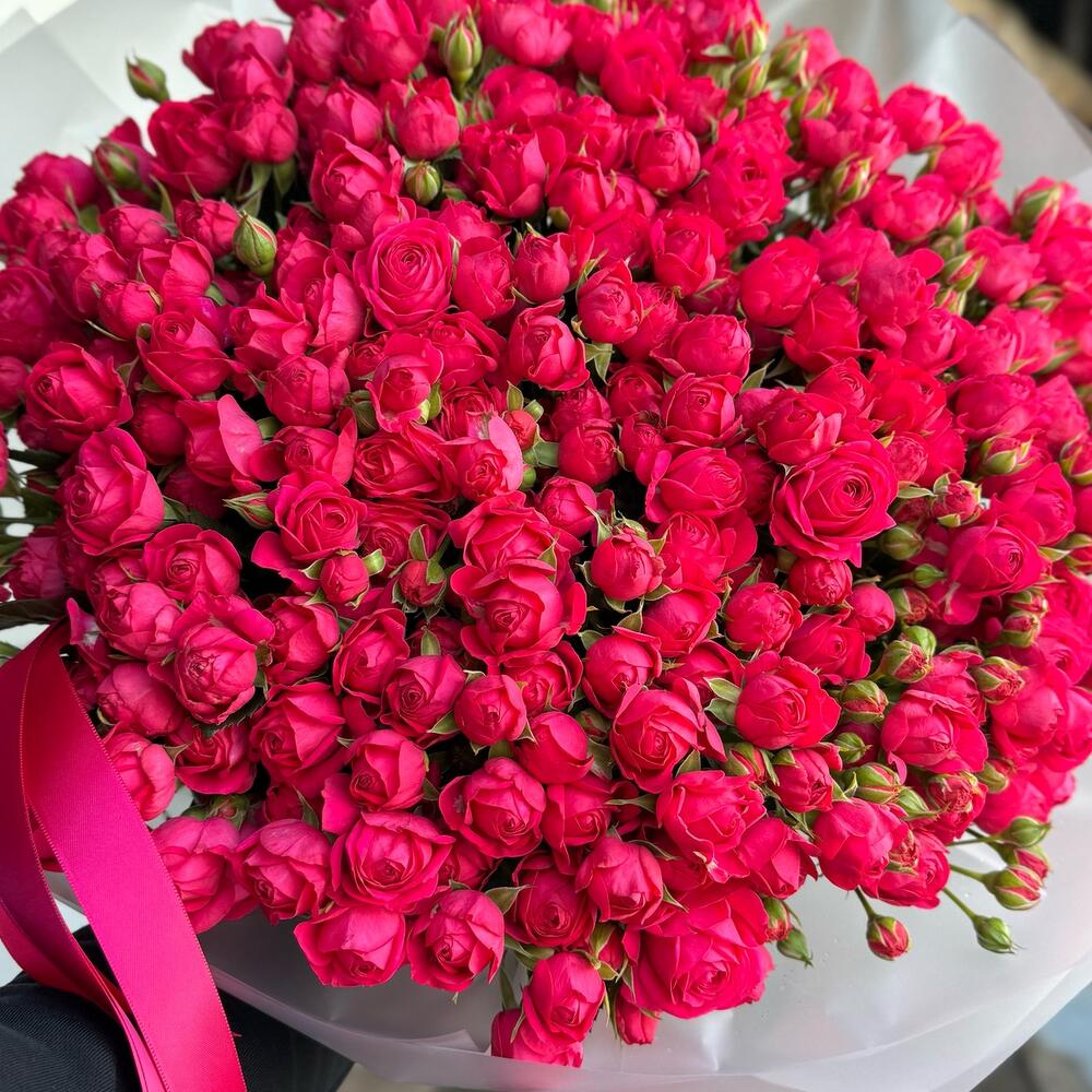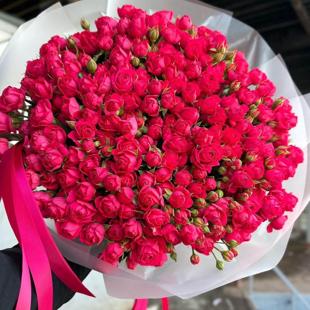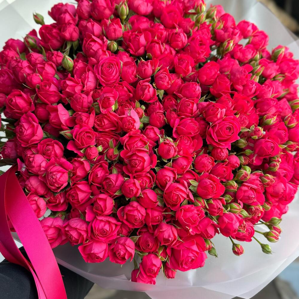 Кустовые пышные пионовидные розы красивого малинового цвета подмосковные