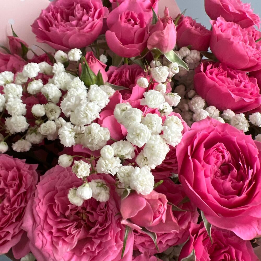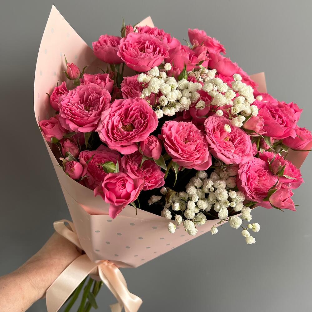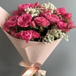 Гипсофила - 1 шт. Кустовая роза - 5 шт. Упаковка - 1 шт.