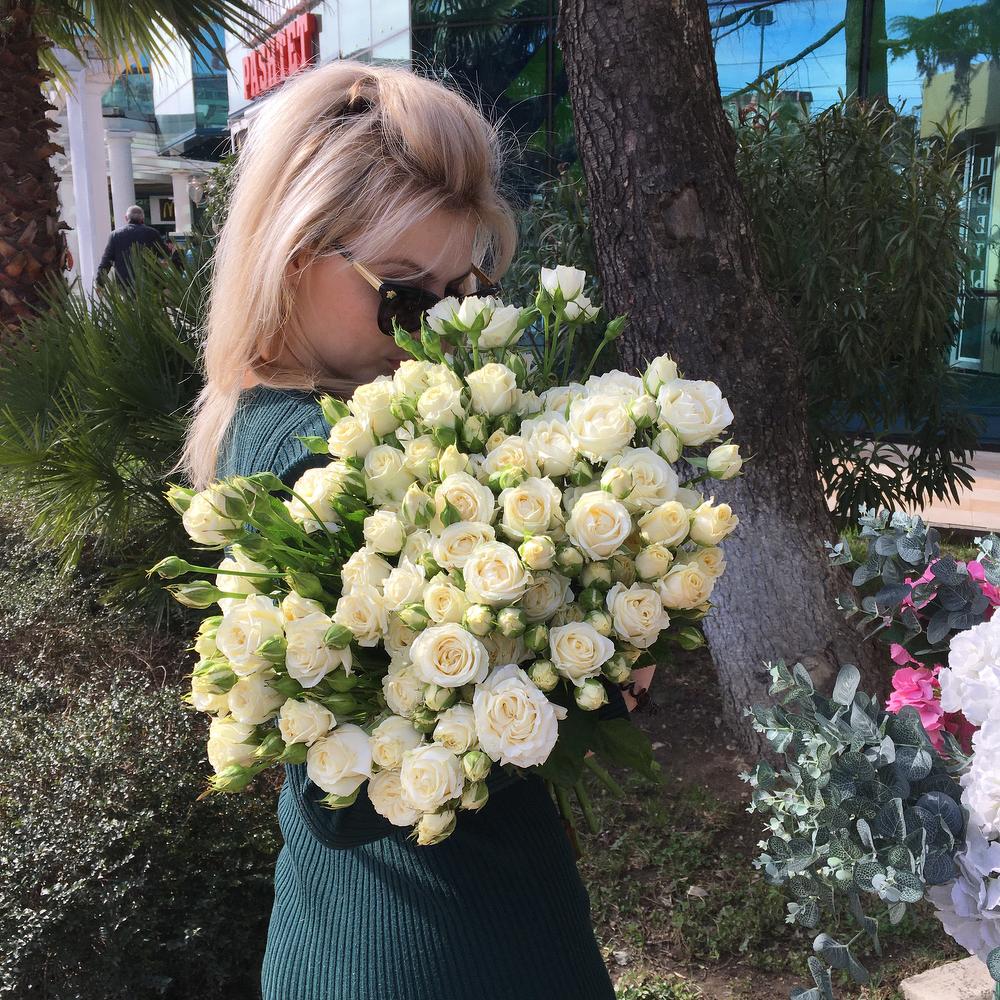 Роза кустовая - 11 шт. Лента атласная - 2 шт.