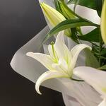 Лилия - 5 шт. Лента атласная - 1 шт. Матовая упаковка - 2 шт.