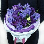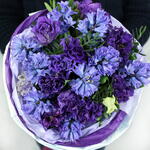 Состав : Лизиантус синий,Гиацинт синий*,Листья фисташки,Упаковка в ассортименте (за1м),Бумага Тишью (за1шт),Лента (за1м),Плёнка прозрачная (за1м) Длина, Мм: 250 Высота, Мм: 300 Ширина, Мм: 250