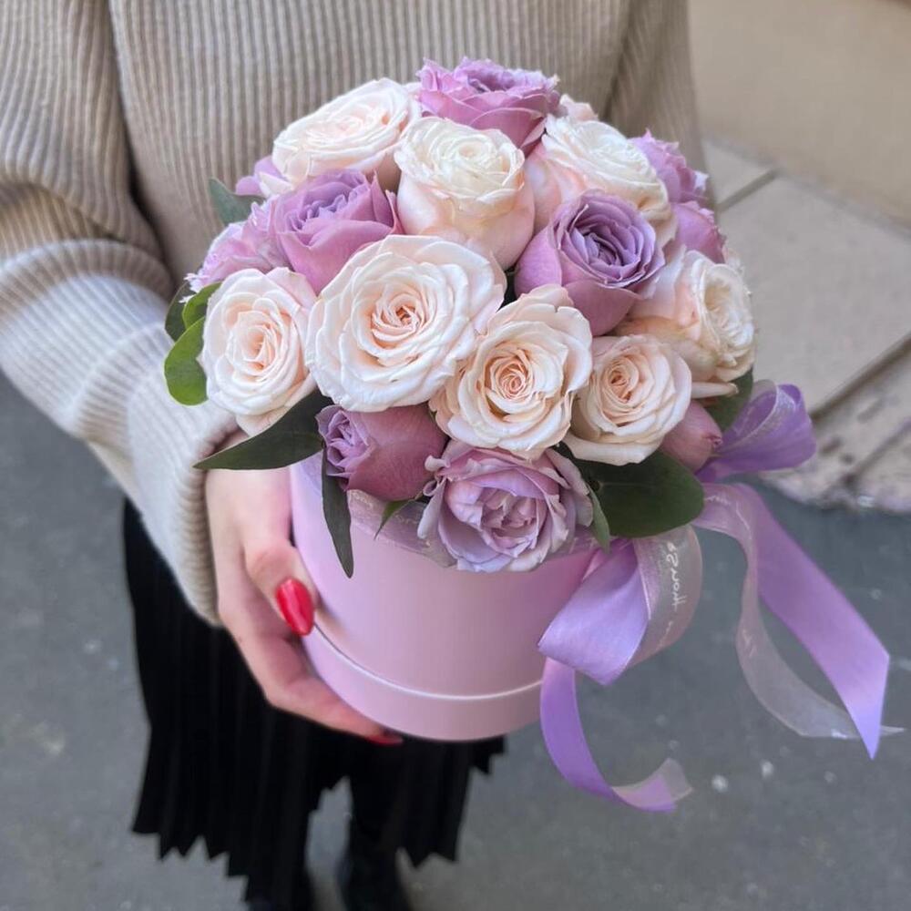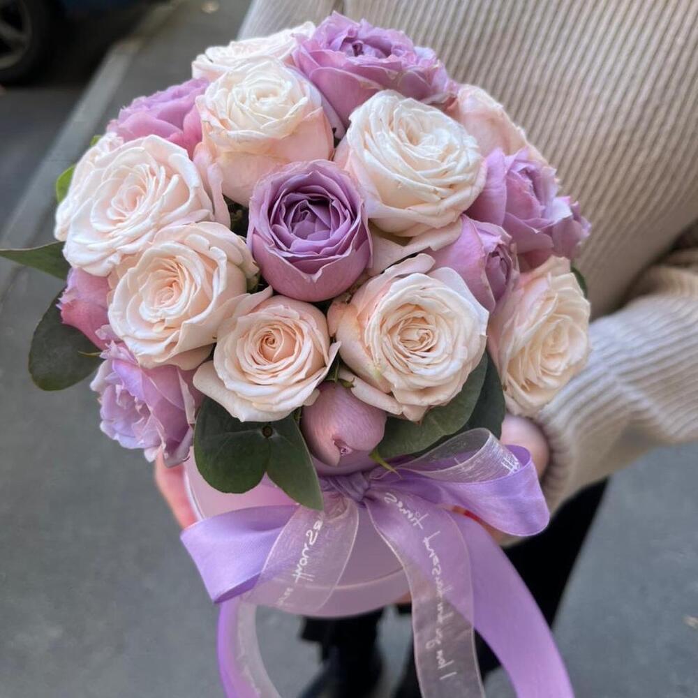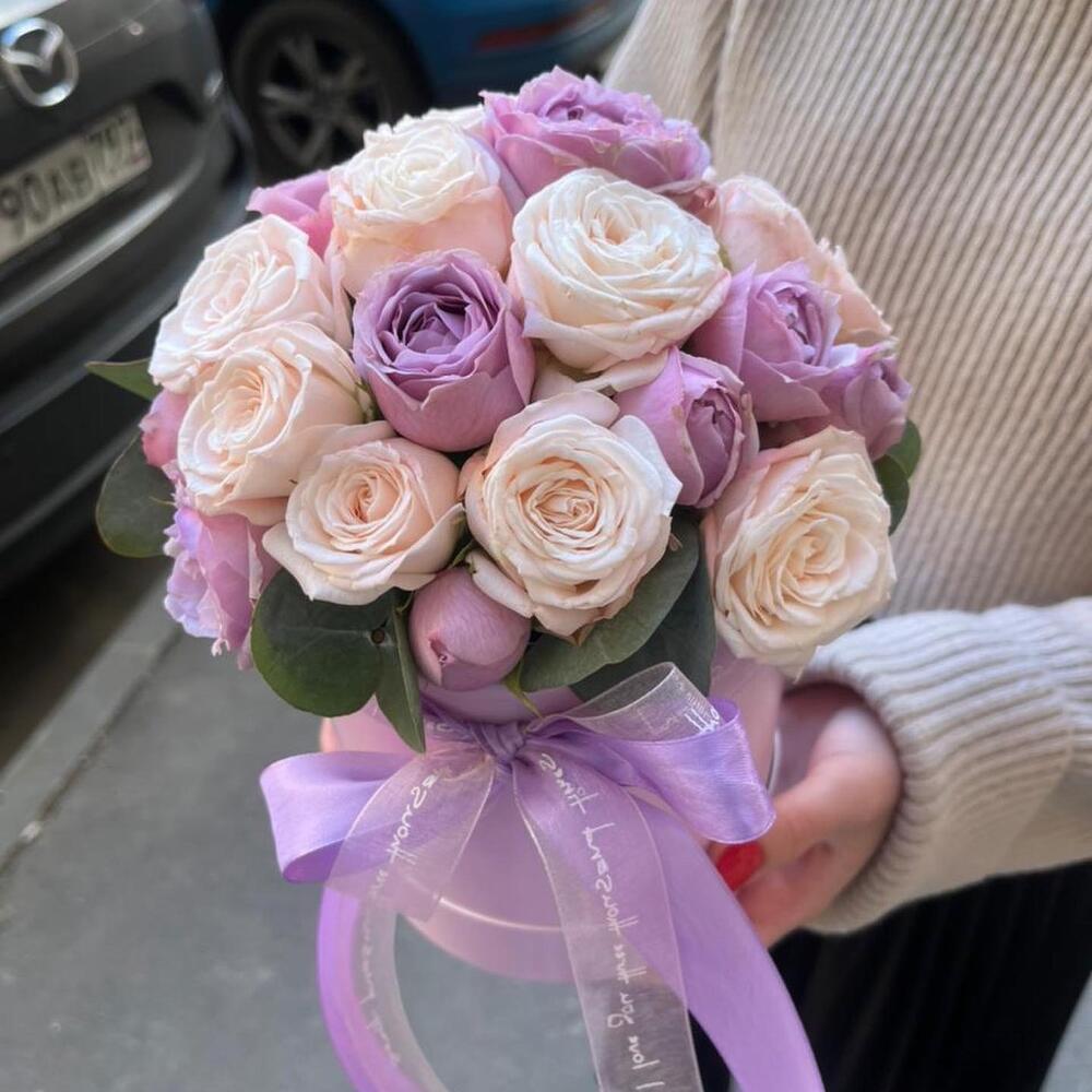 Мадам бомбастик - 5 шт. кустовая пионовидная роза лавандового цвета - 7 шт.
