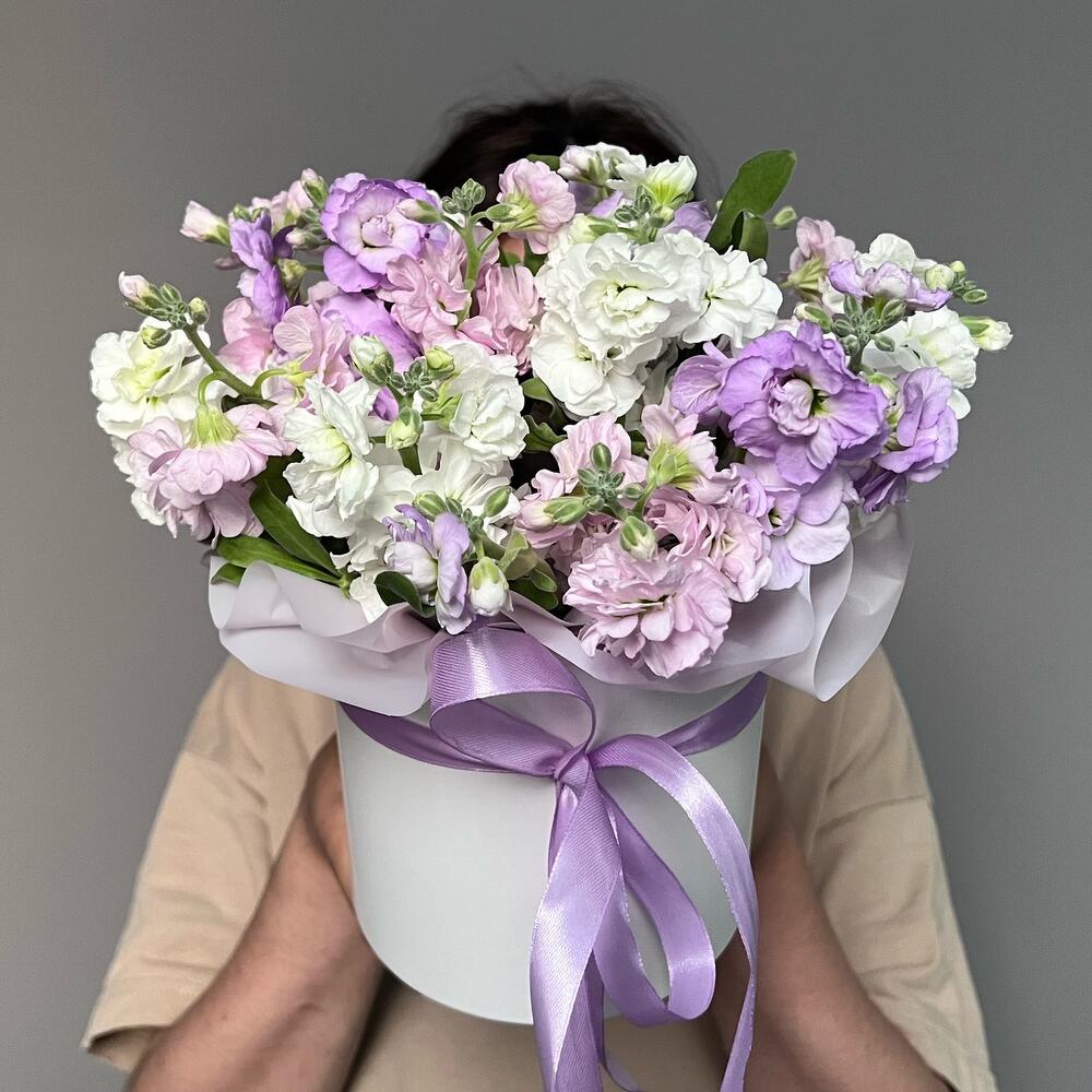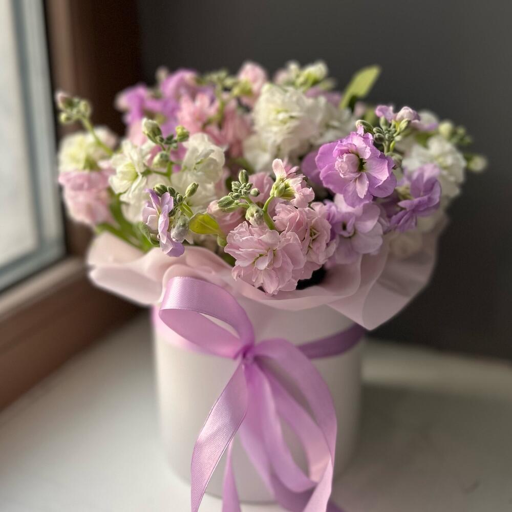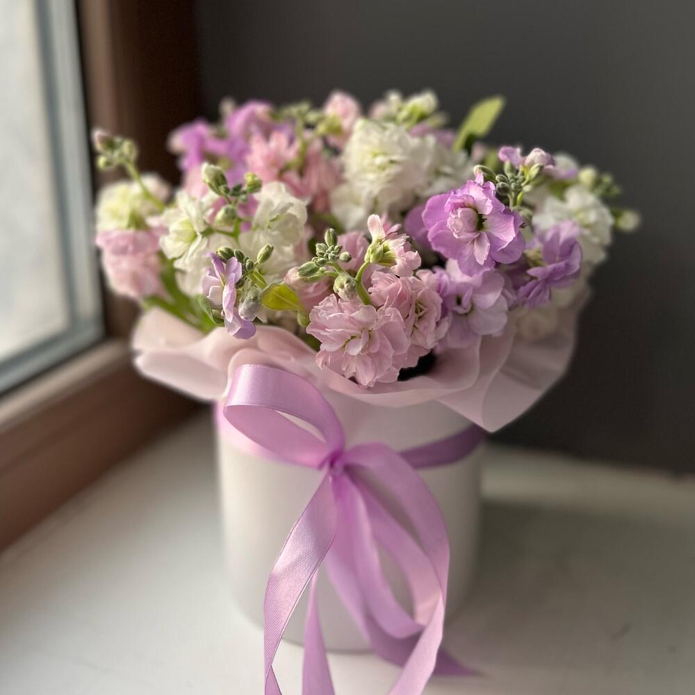 Шляпная коробка - 1 шт. Маттиола Белая - 5 шт.