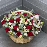 Эустома с розами в корзине