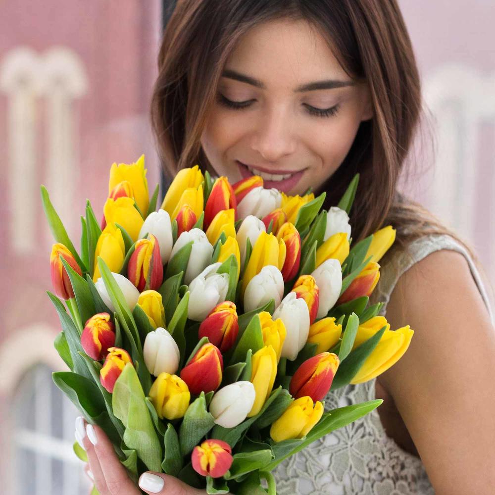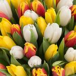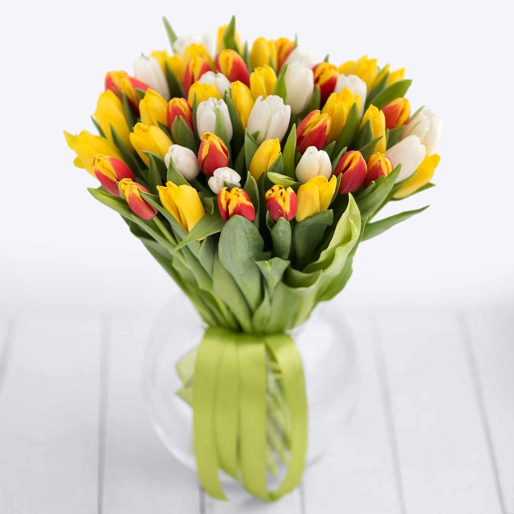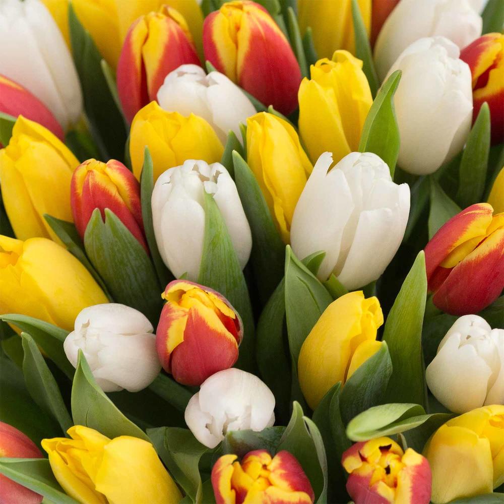 Микс из 51 белых, желтых и оранжевых тюльпанов