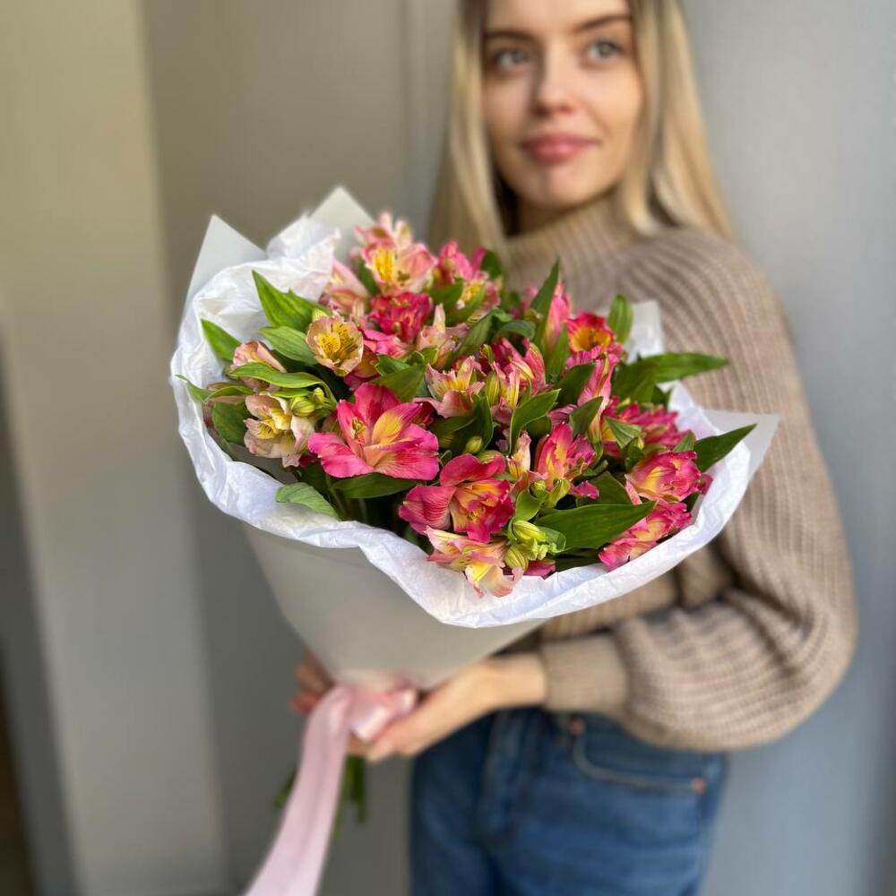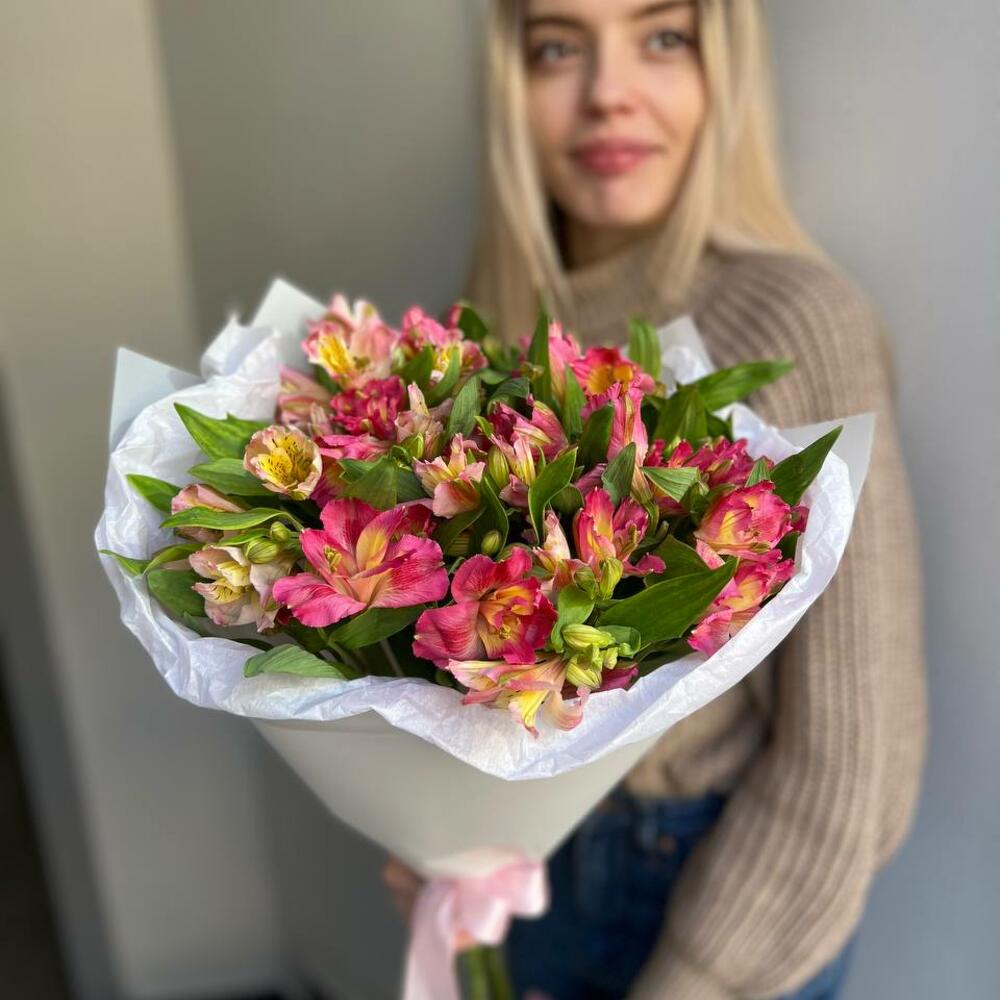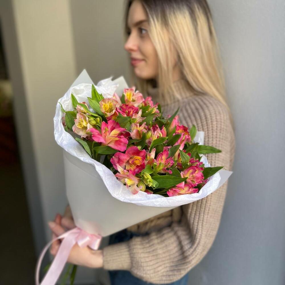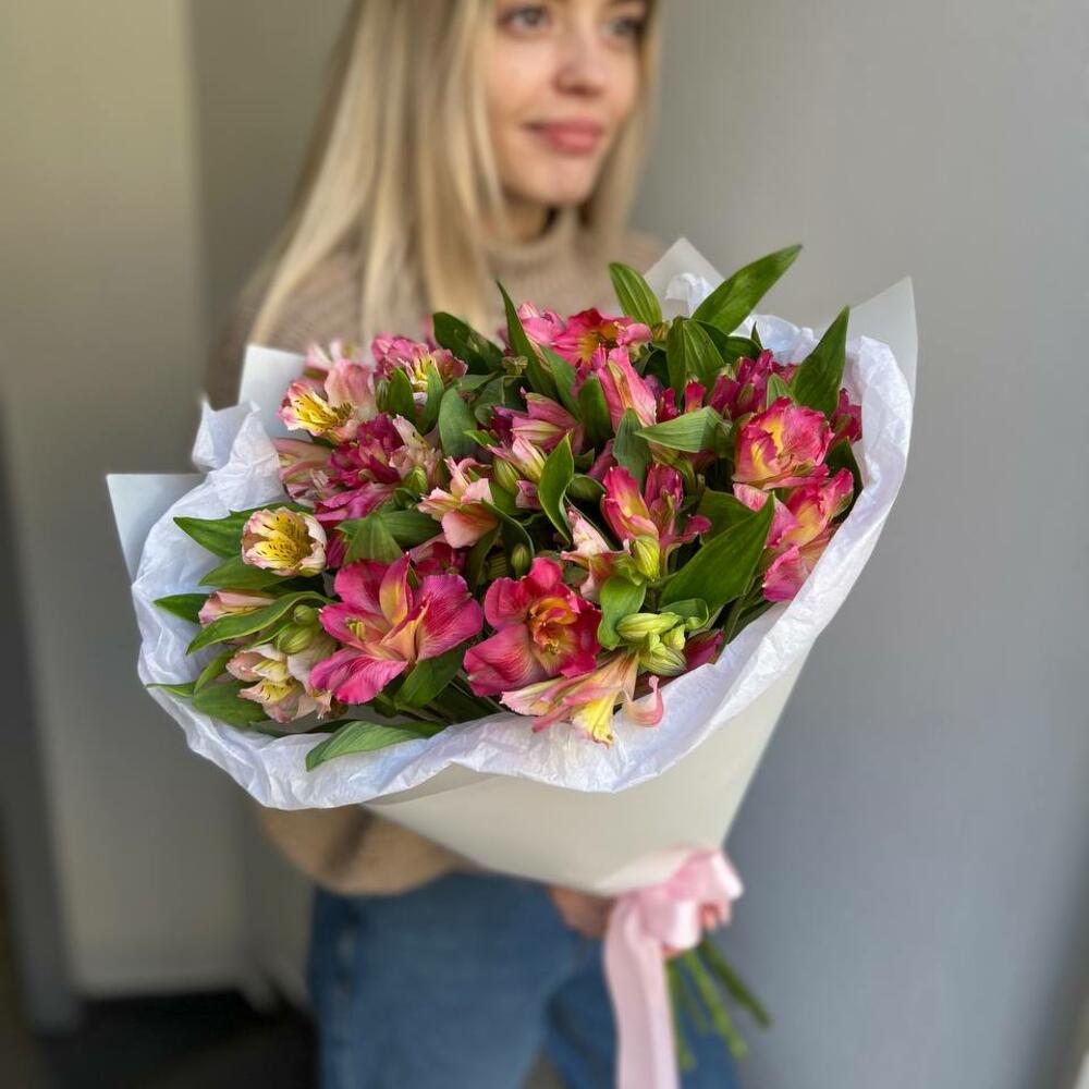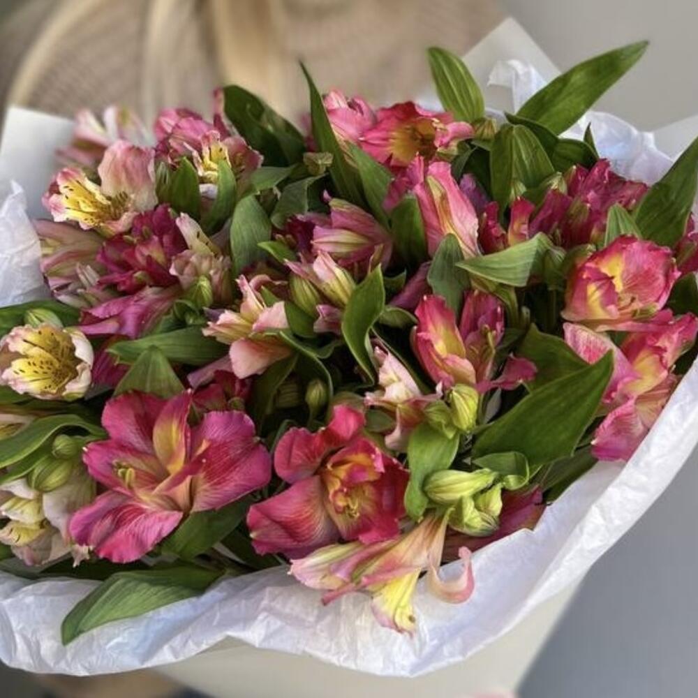 Альстромерия - 7 шт. Лента атласная - 1 шт. Тишью - 1 шт. Пленка матовая - 1 шт.