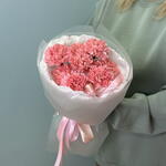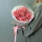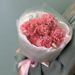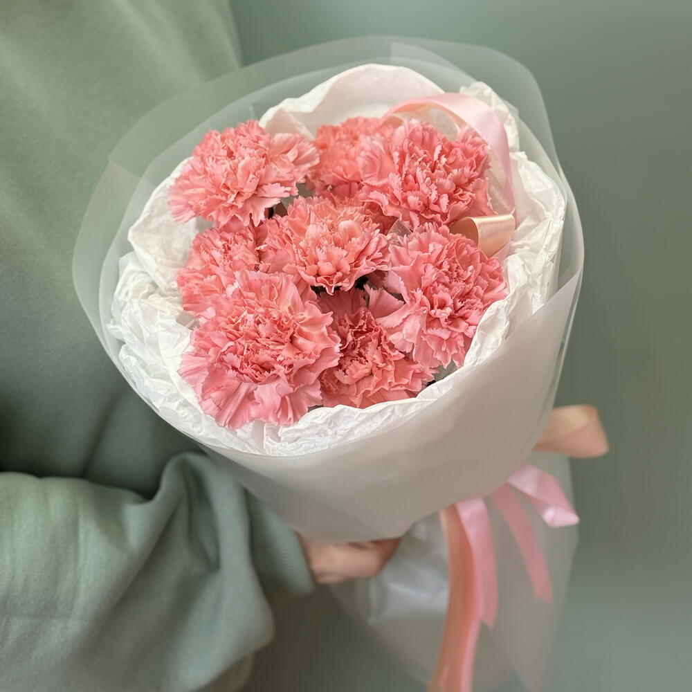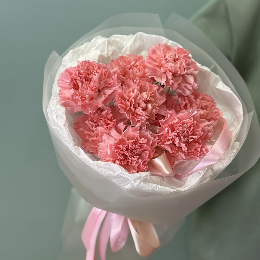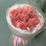Гвоздика - 9 шт. Пистация - 1 шт. Лента шелковая - 3 шт. Бумага тишью - 2 шт. упаковка декоративная - 1 шт.