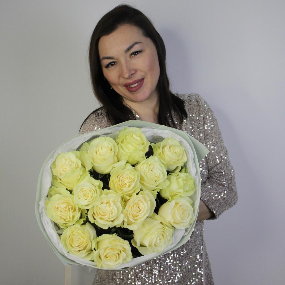 Моно букет из 15 белых роз
