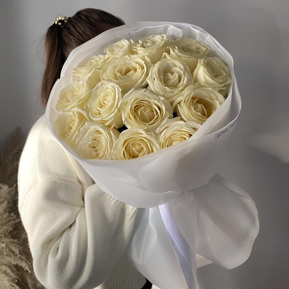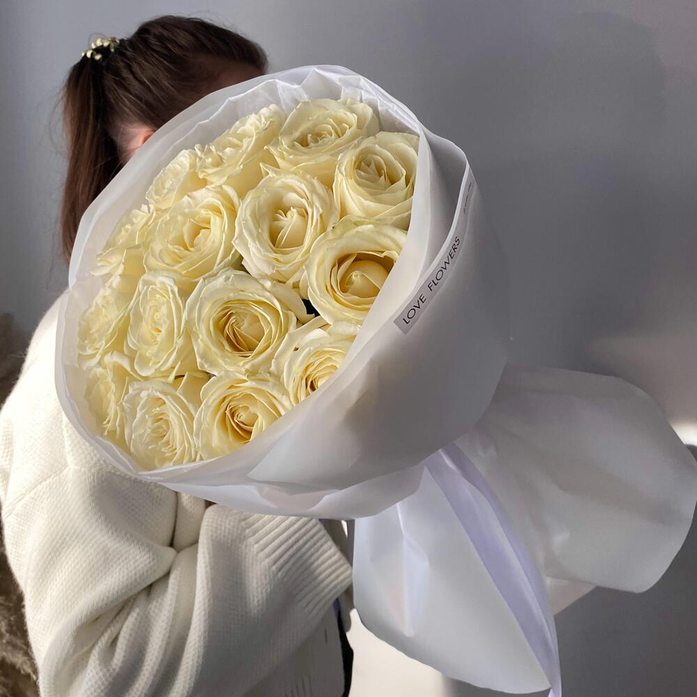 Моно из белых роз 15шт на 8 марта
