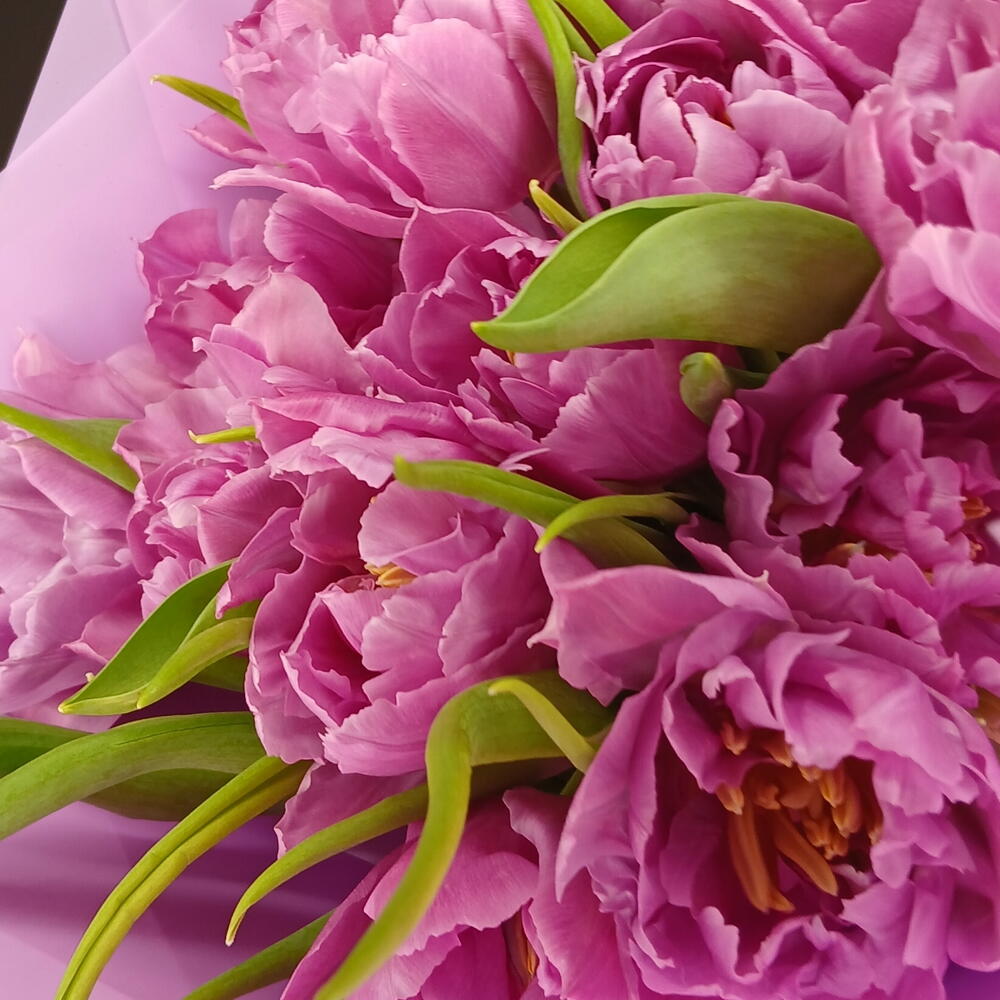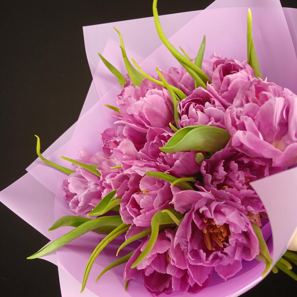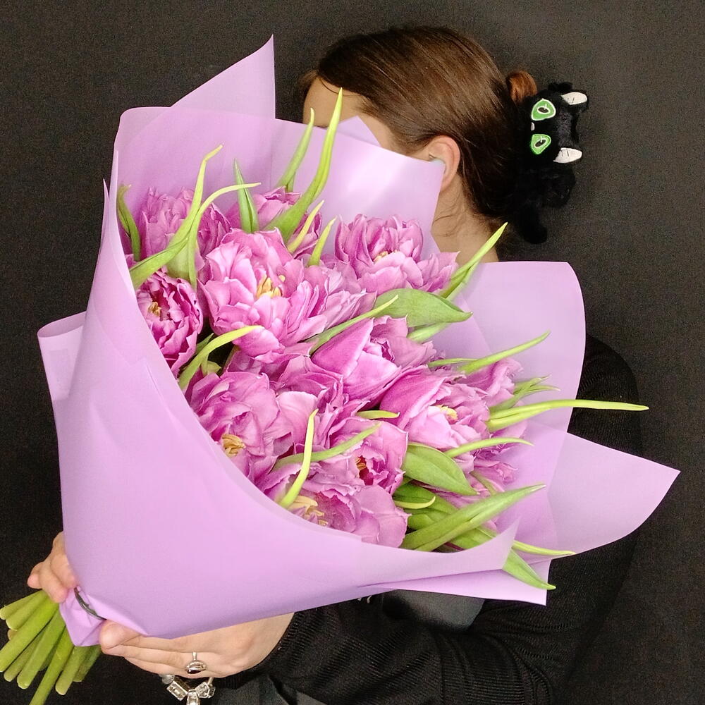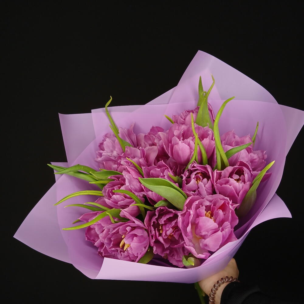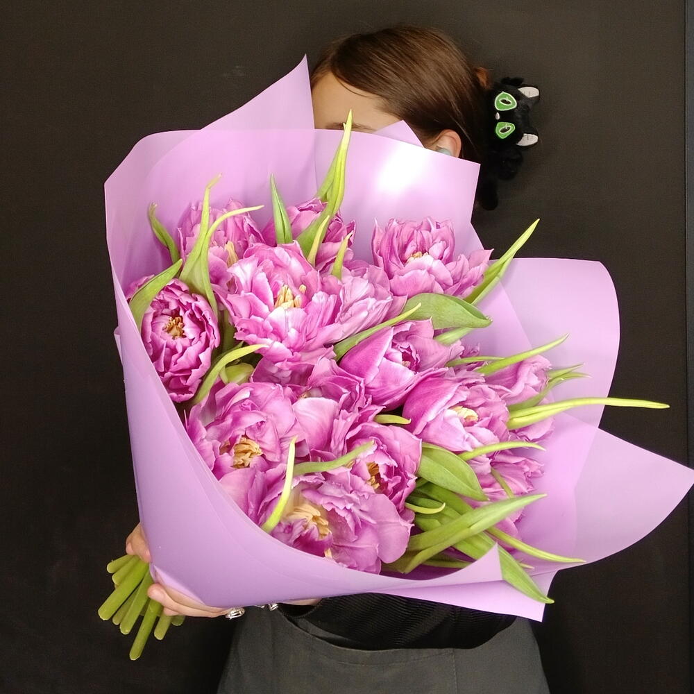 Упаковка дизайнерская - 1 шт. пионовидные тюльпаны - 15 шт. упаковка транспортировочная - 1 шт.