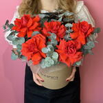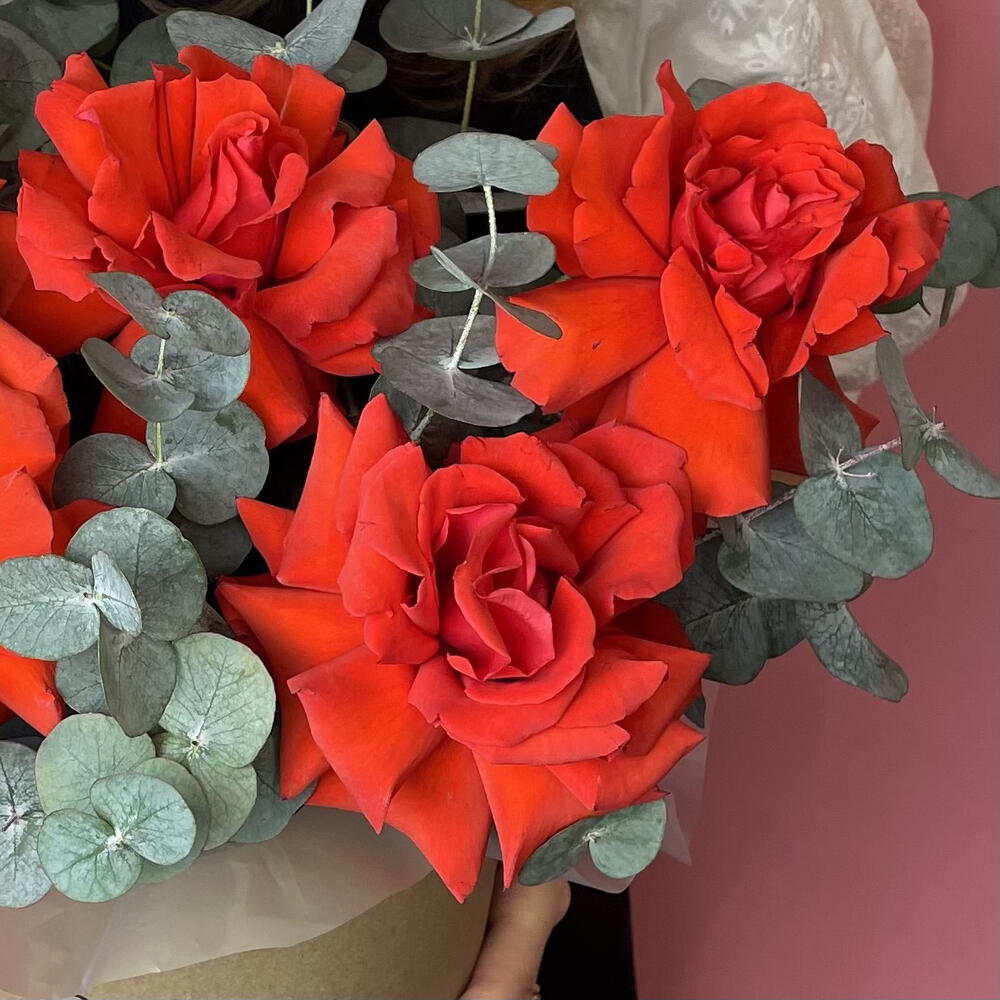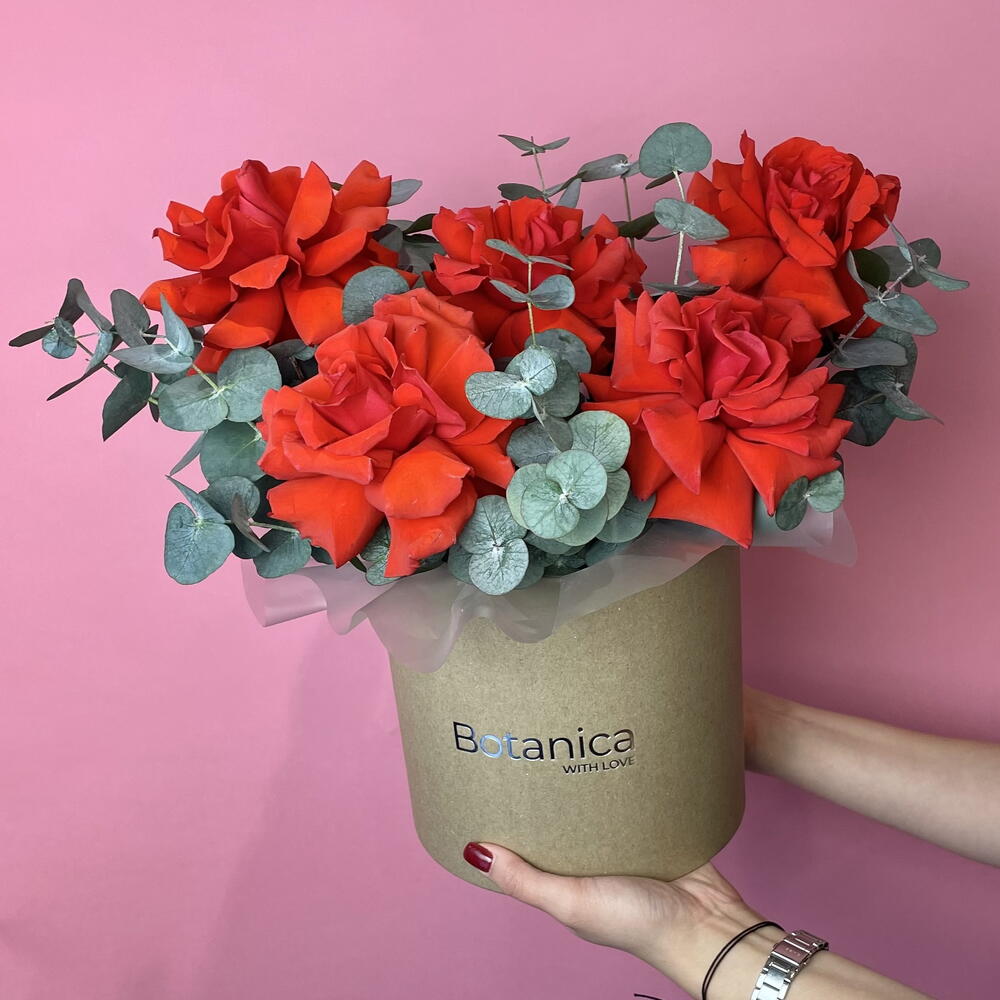 Оазис - 1 шт. Роза Нина - 5 шт. Эвкалипт Микс - 1 шт. коробка ботаника - 1 шт.