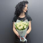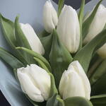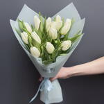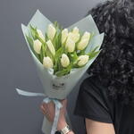 Монобукет из 15 белых тюльпанов с оформлением Доставляется в транспортировочной коробке Состав: упаковка пленка матовая, тюльпаны Ширина, см: 20 Длина, см: 20 Высота, см: 35 Вес: 0.9 кг..