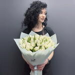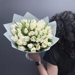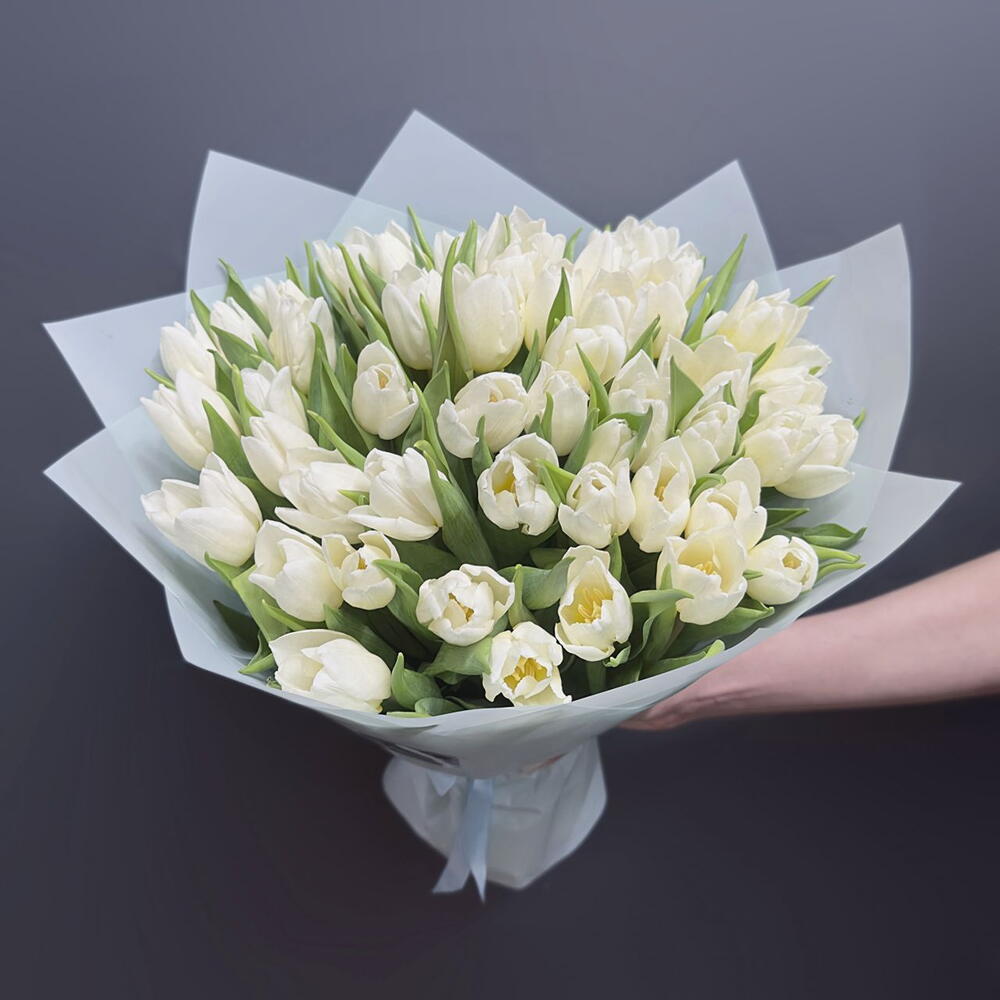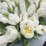 Монобукет из 51 белого пионовидного тюльпана с оформлением Доставляется в транспортировочной коробке Состав: упаковка пленка матовая, тюльпаны Ширина, см: 35 Длина, см: 35 Высота, см: 40 Вес: 0.9 кг..