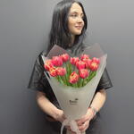 Монобукет из 15 тюльпанов Колумбус с оформлением Доставляется в транспортировочной коробке Состав: упаковка пленка матовая, тюльпаны Ширина, см: 20 Длина, см: 20 Высота, см: 40 Вес: 0.9 кг..