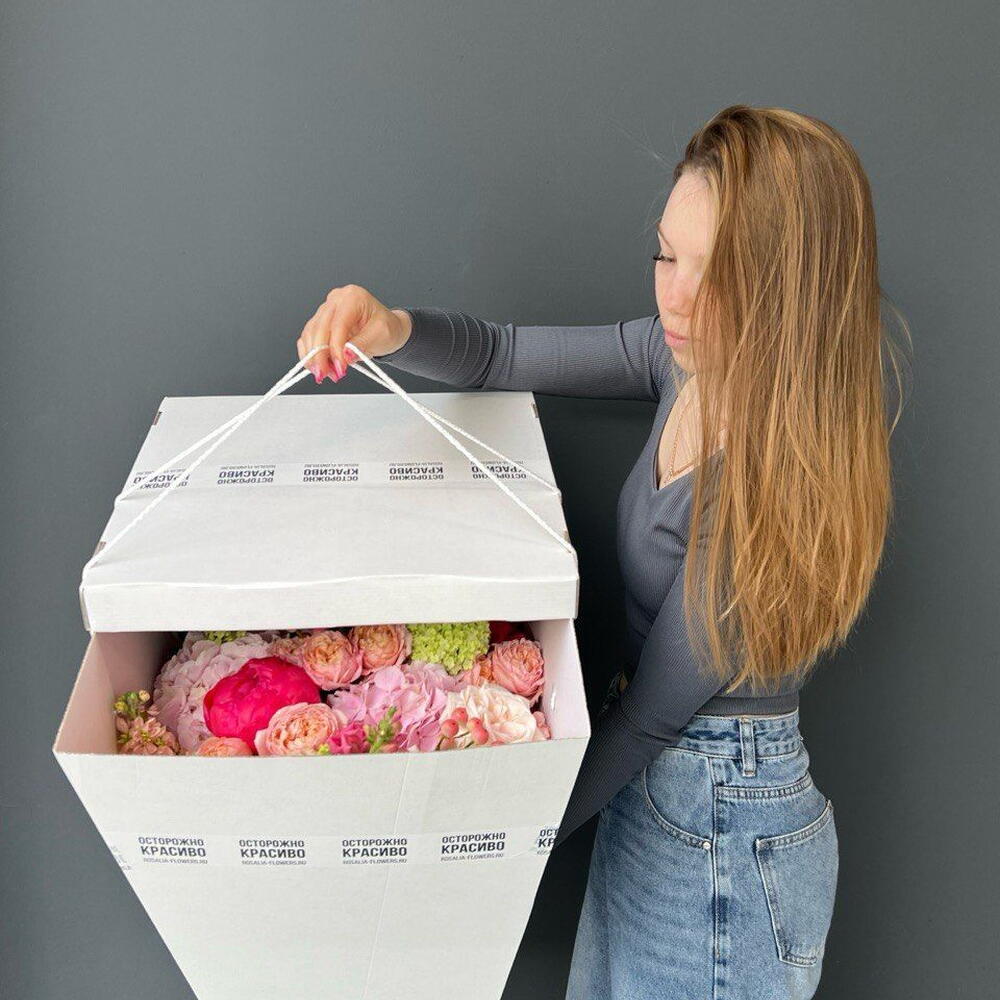 Тюльпан дабл - 25 шт. Вациниум - 1 шт. открытка фирменная - 1 шт. упаковка пленка матовая 1 м - 1 шт. аква пакет прозрачный - 1 шт. коробка для цветов №s 1 - 1 шт.
