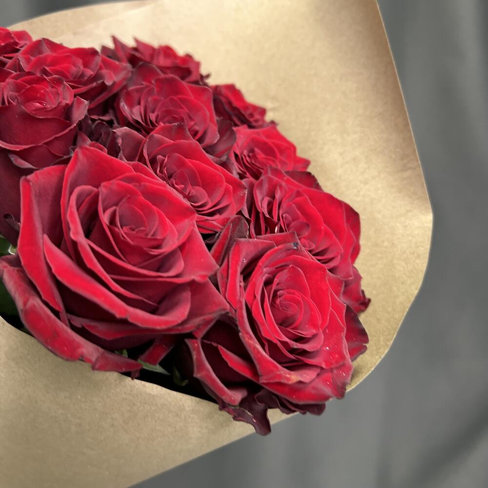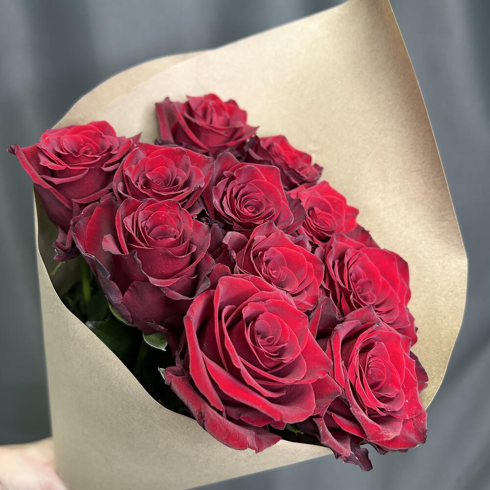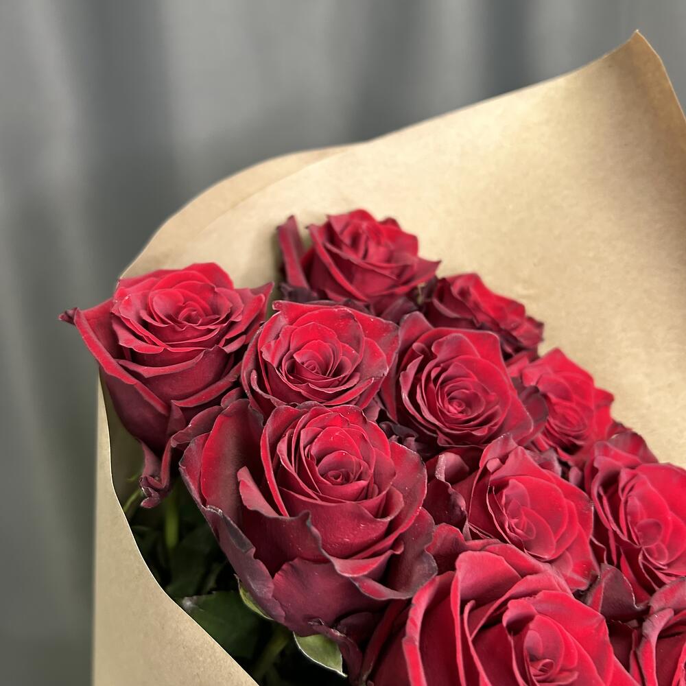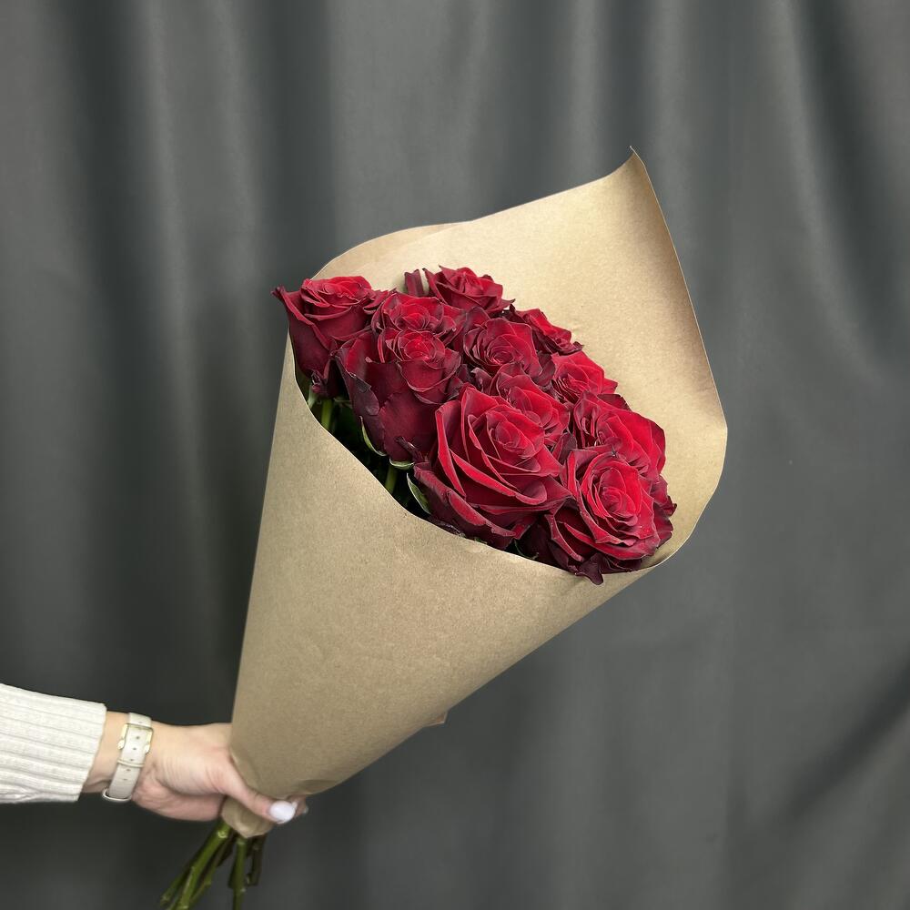 Лента атласная - 1 шт. Крафт упаковка - 1 шт. роза эквадор эксплорер 60 см - 11 шт.
