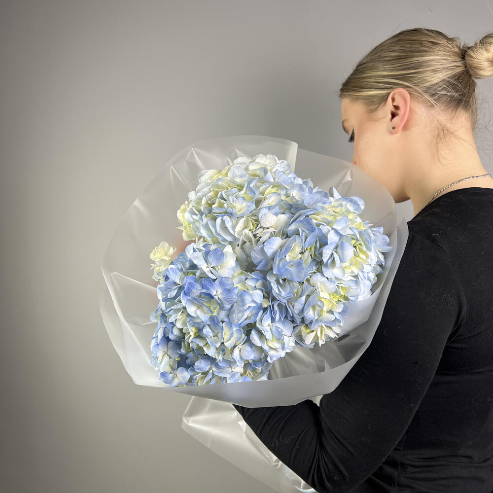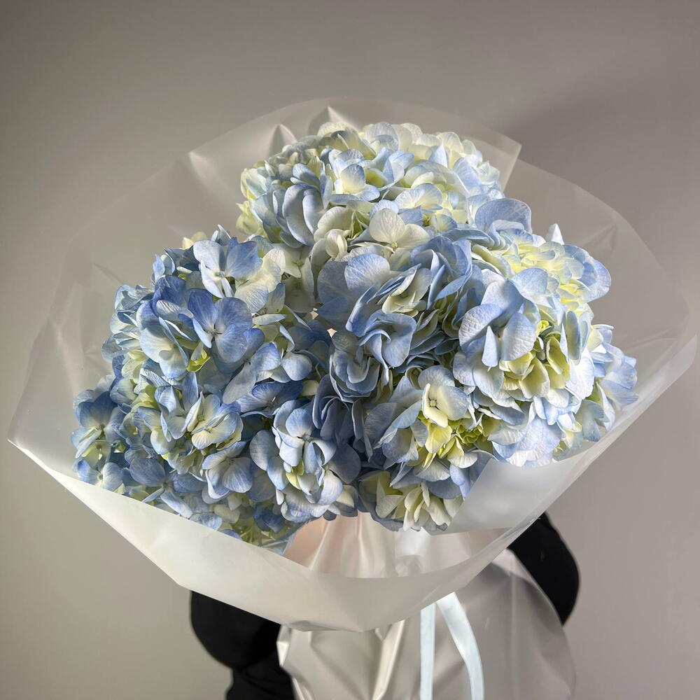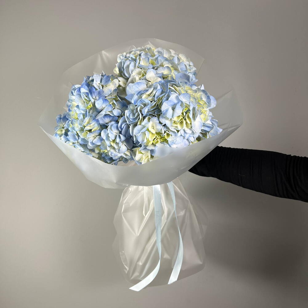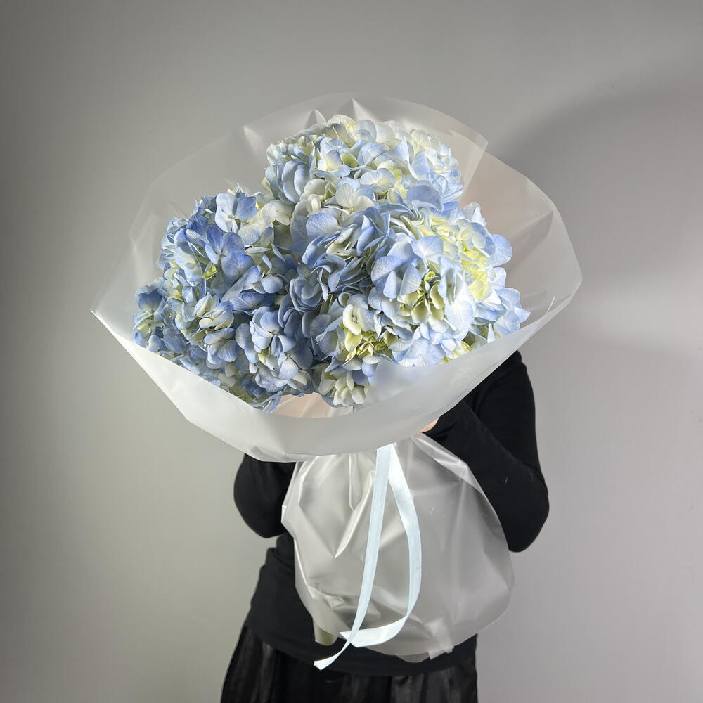 Лента атласная - 1 шт. Кризал (подкормка) - 1 шт. Открыточка с вашими пожеланиями - 1 шт. Дизайнерская упаковка - 1 шт. Гортензия Премиум Блю - 3 шт.