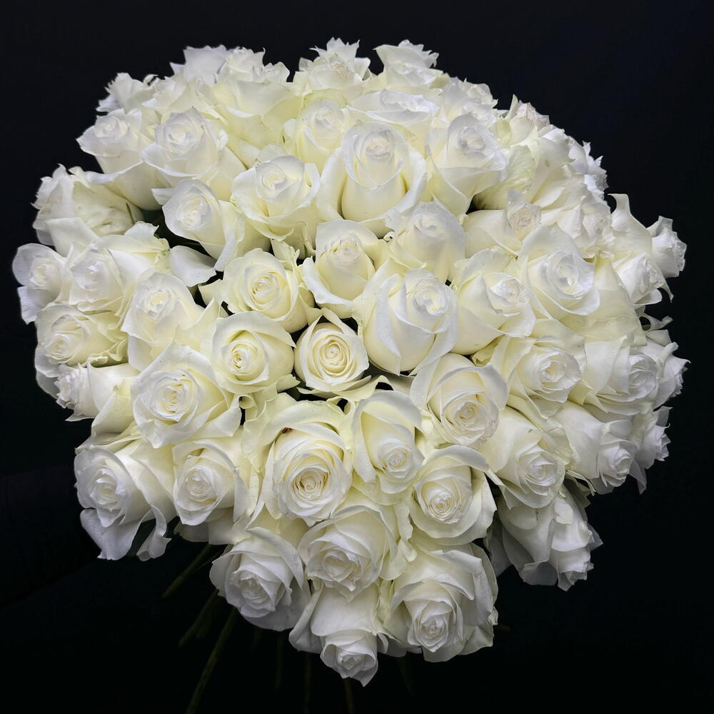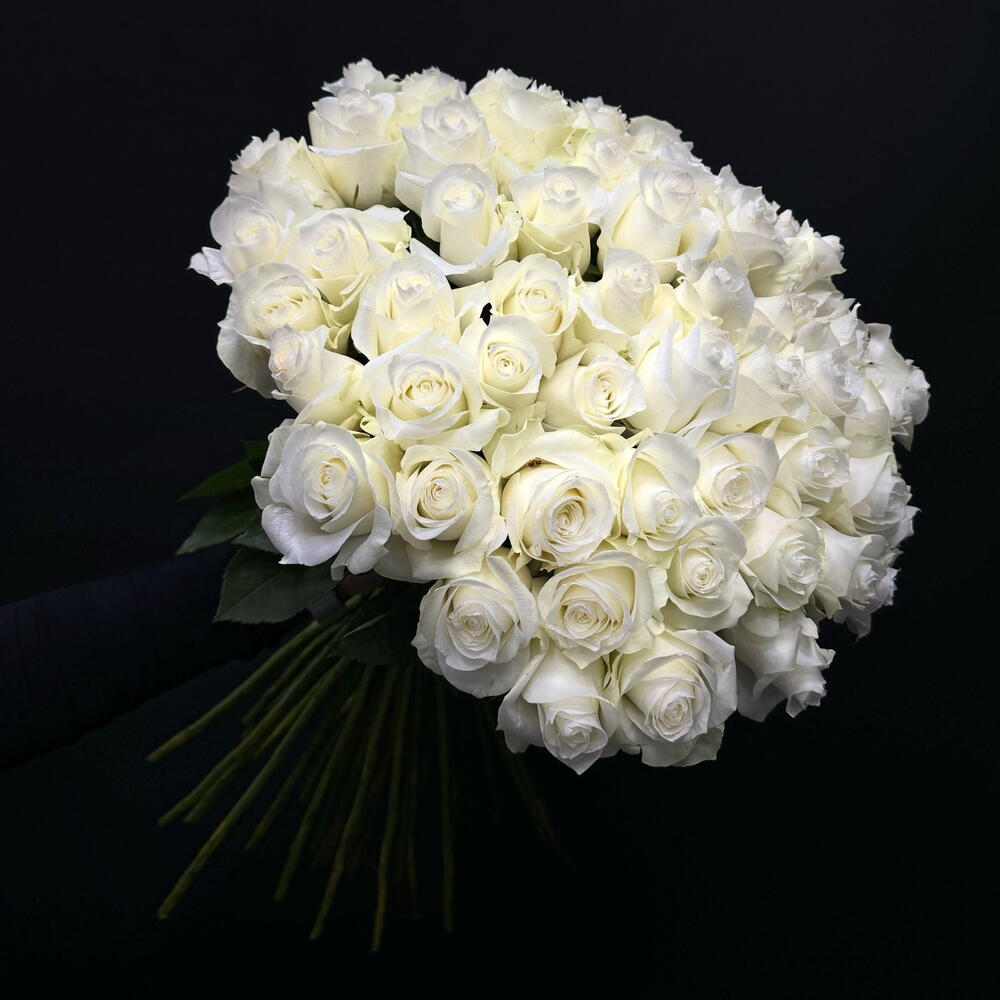 Монобукет из 59 белых роз премиум сорта Кения