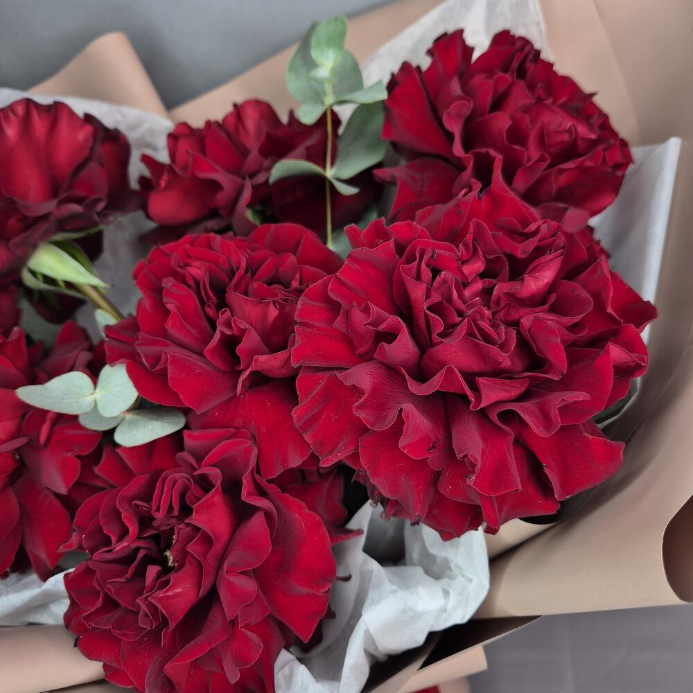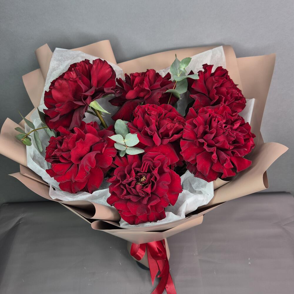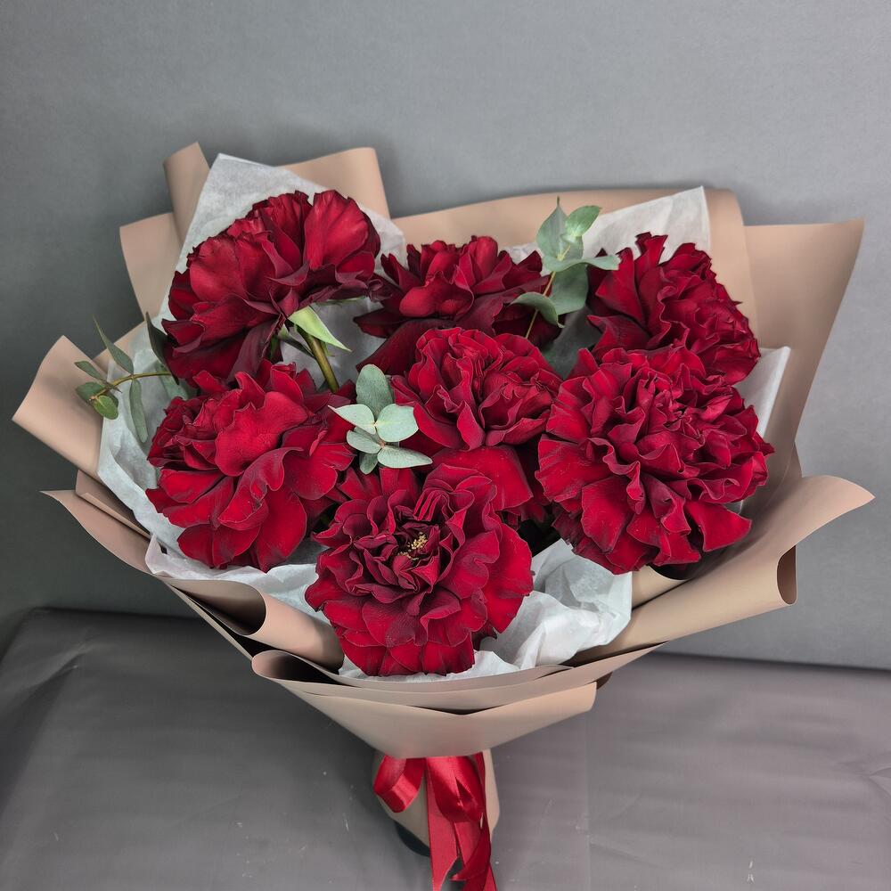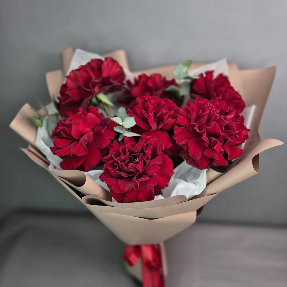 Эвкалипт - 1 шт. Упаковка дизайнерская - 1 шт. Роза французская - 7 шт.