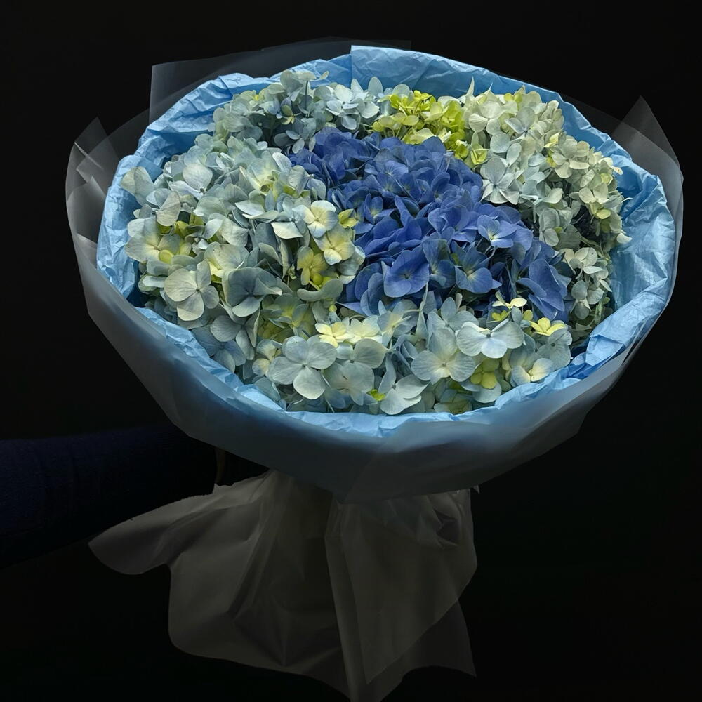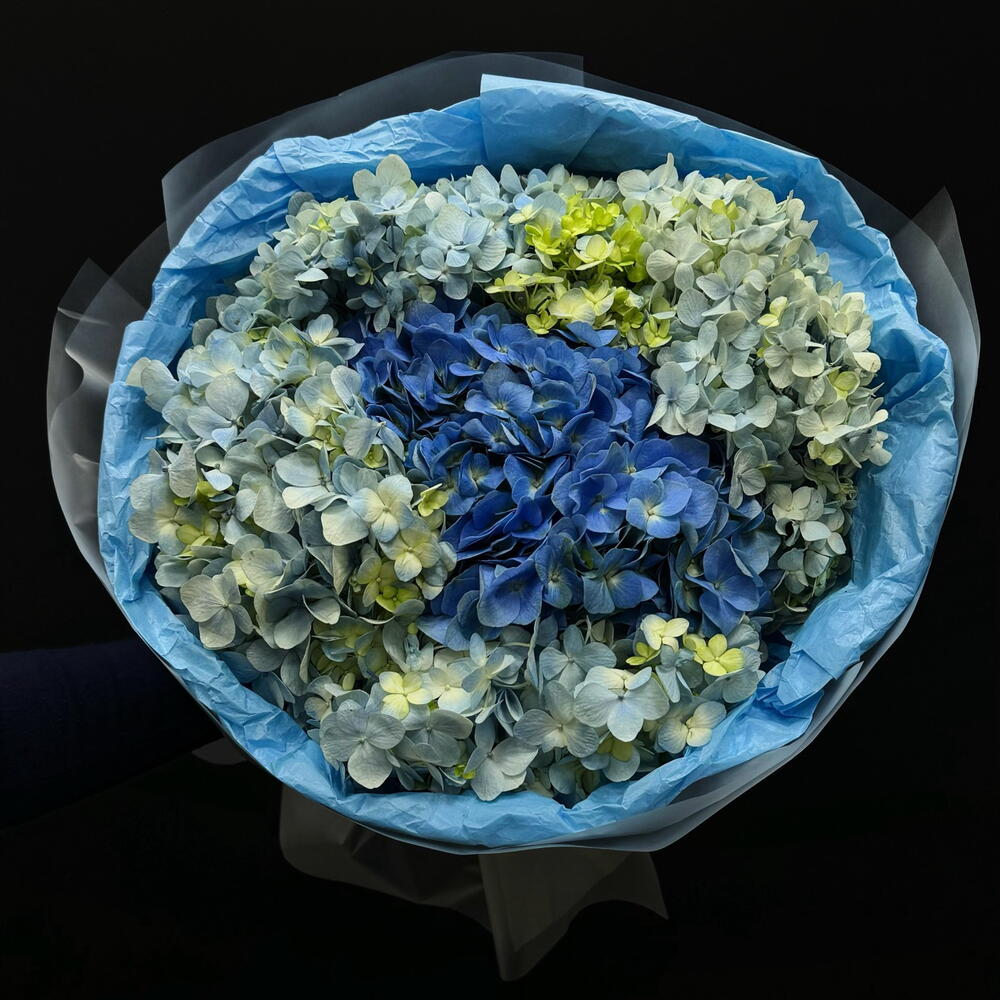 Одновременно яркий и нежный букет голубых гортензий-лучшее решение! Нежное облако почти в Ваших руках