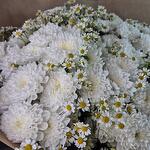 Букет из белоснежных хризантем и матрикарий