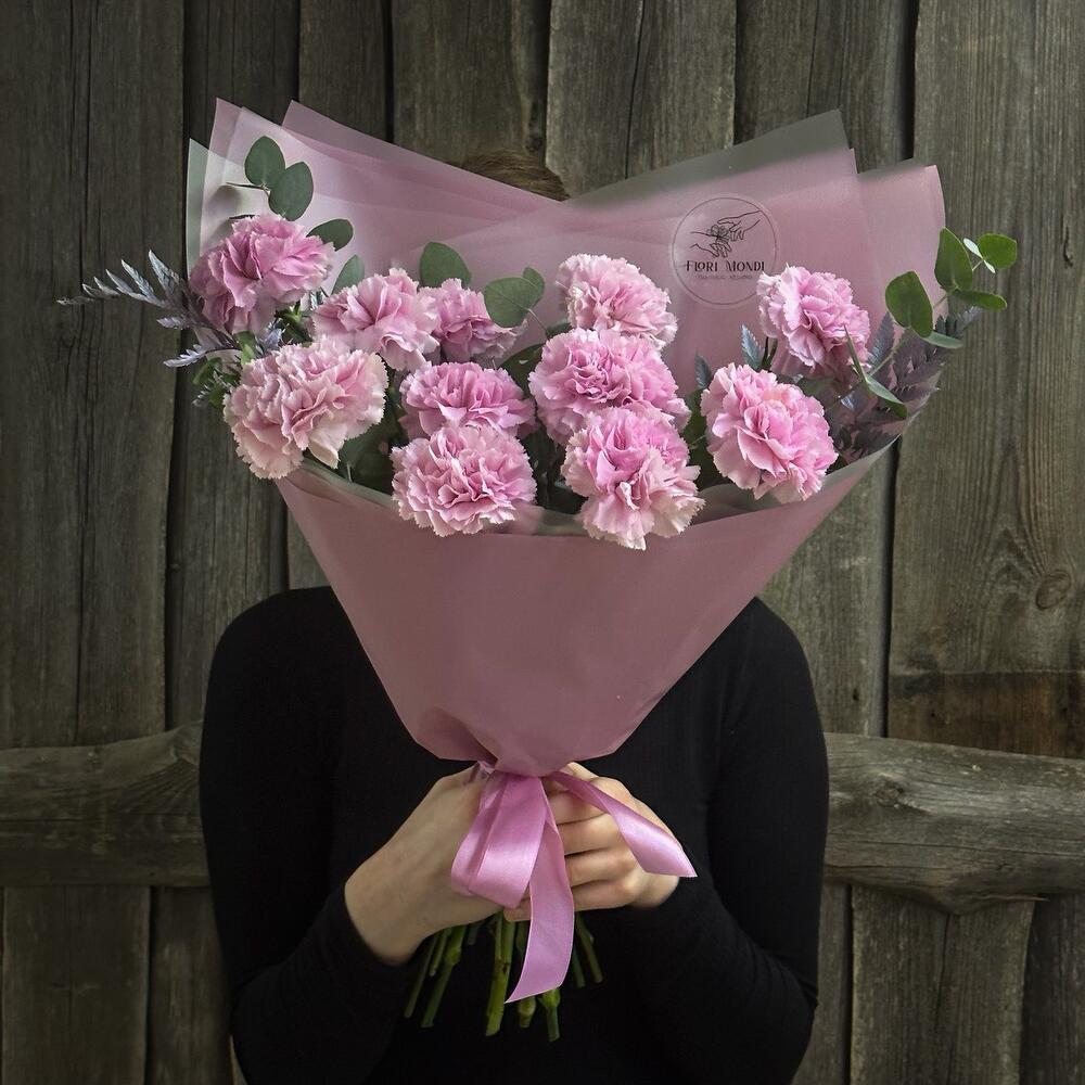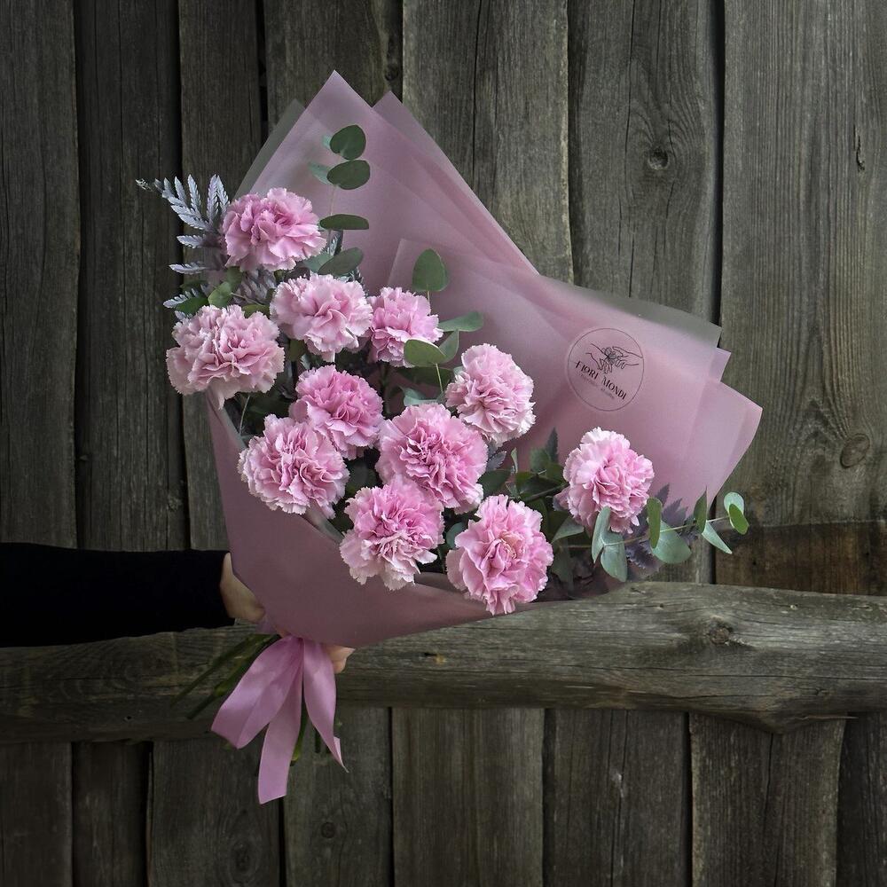 Воздушный и легкий букет из нежно-розовой гвоздики, папоротника и эвкалипта - отличный подарок маме, коллеге, любимой девушке. Прекрасная стойкость и нежный аромат - ваш подарок запомнят надолго! Обязательно добавляем к заказу: - Бесплатную открытку с вашим текстом - Аквабокс По запросу добавляем к заказу: - Подкормку для цветов и инструкцию по уходу за ними