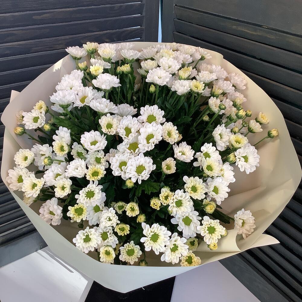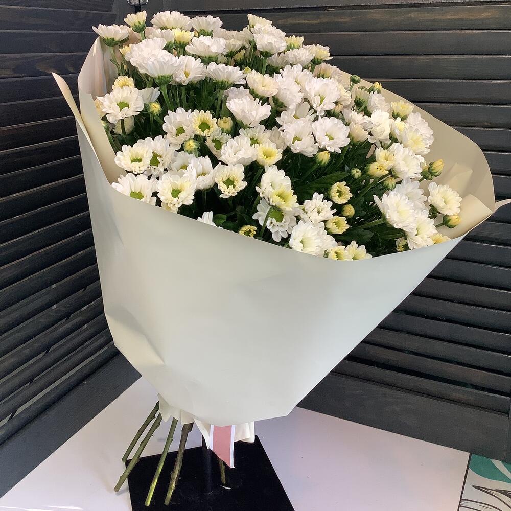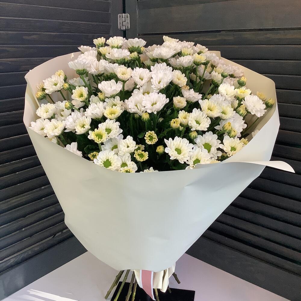 Воздушный букет с хризантемой сантини. В наличии имеются разные сорта сантини. При замене на другой сорт, цветовая гамма и стилистика букета останется неизменной. Указаны примерные размеры букета, чтобы вы могли представить его внешний вид и масштаб, но фактически размеры могут немного отличаться. Обратите внимание, что оттенок упаковки может незначительно отличаться. Степень раскрытия бутона так же может быть разной. Цветок используется свежий и раскроется при комнатной температуре. Рекомендации Подберите вазу по размеру букета. Наберите холодную свежую воду. Прежде, чем ставить цветы в воду, подрежьте их секатором или острым ножом. Заменяйте воду на свежую каждые 2 дня. Не ставьте цветы вблизи отопительных приборов, они любят прохладу;) Любуйтесь✨