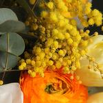 Мимоза - 2 шт. Нарцисс - 7 шт. Тюльпан - 7 шт. Эвкалипт - 5 шт. Ранункулюс - 5 шт.