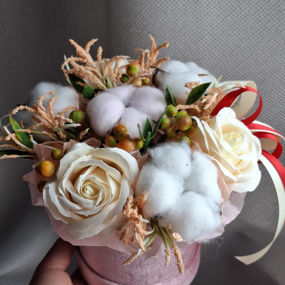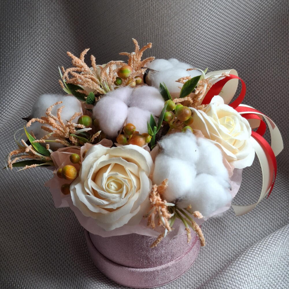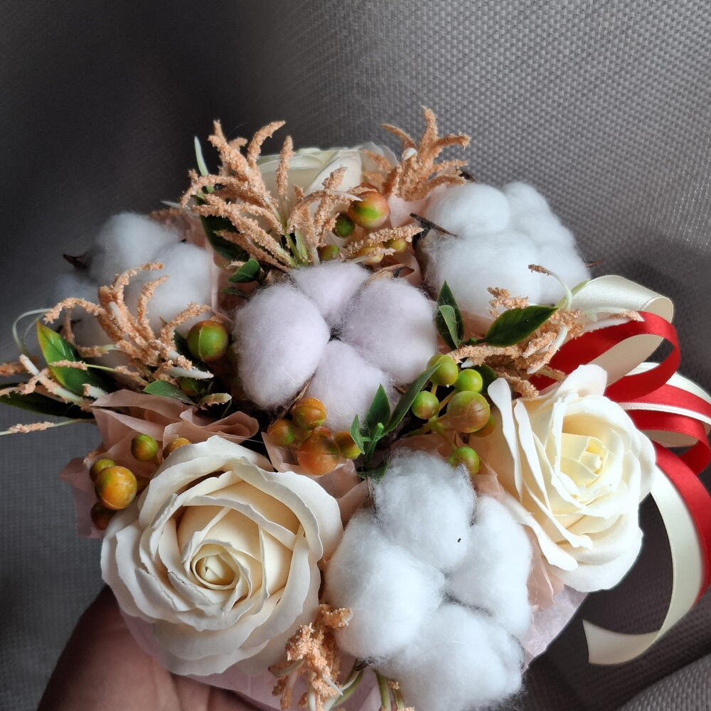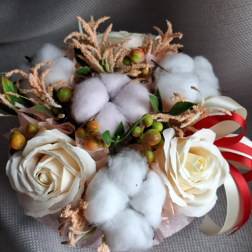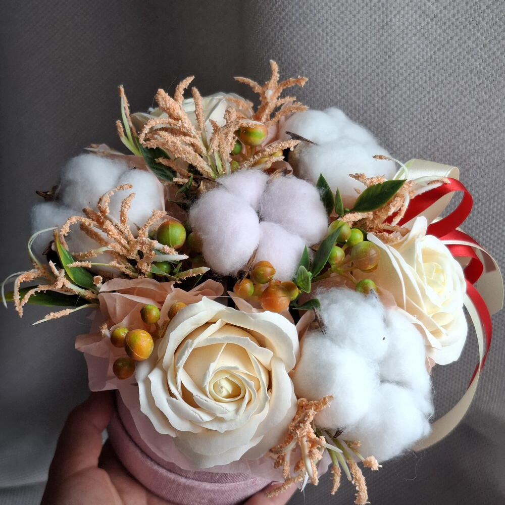 Мыльные розы цвета айвори с сухоцветами