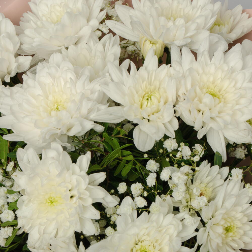 Гипсофила - 1 шт. Хризантема кустовая - 3 шт. Фисташка - 5 шт.