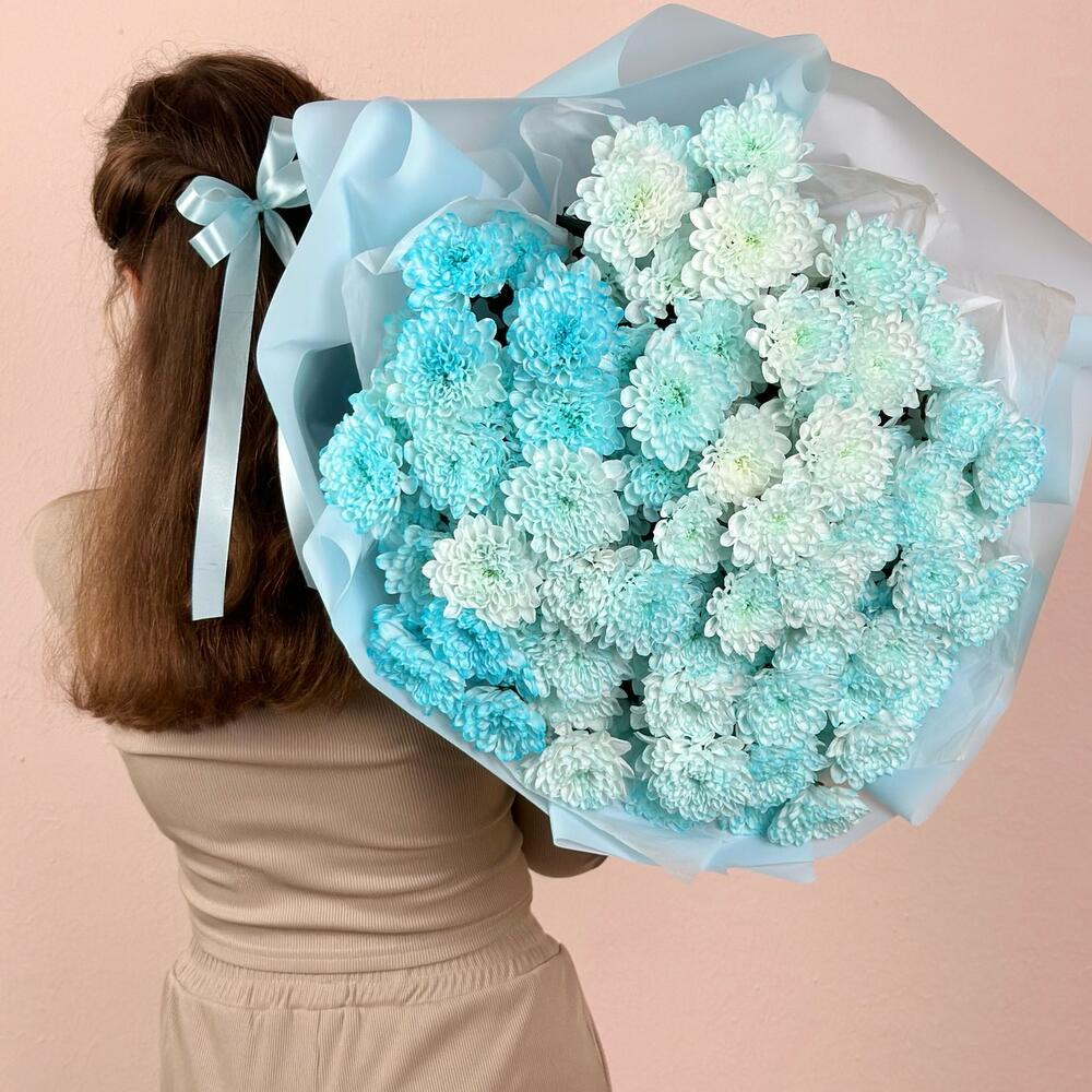 Голубой букет гигант из кустовых хризантем