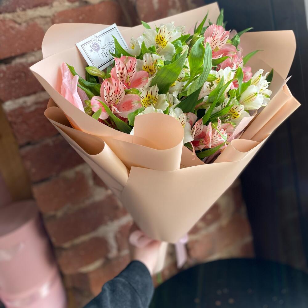 Альстромерия - 7 шт. Лента - 1 шт. Упаковка дизайнерская - 1 шт.