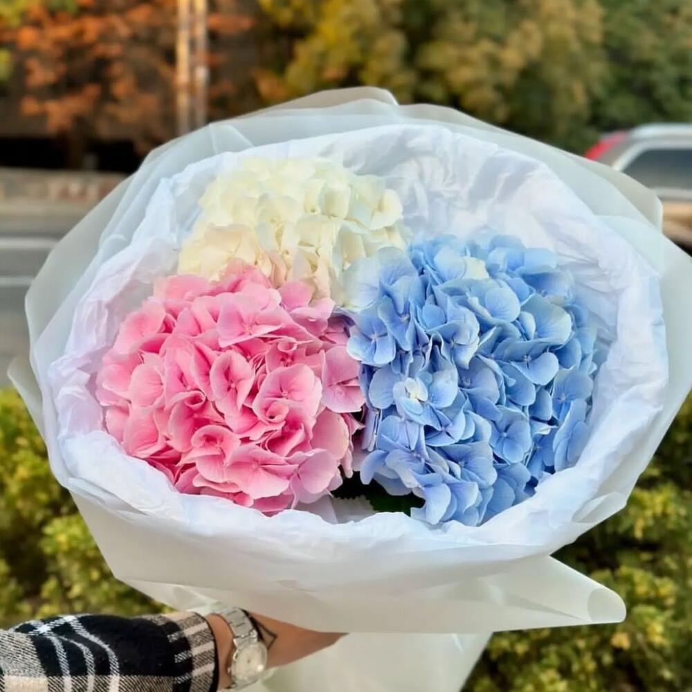 Букет «Облако эмоций» — гортензии Гортензия — цветок, который создаёт объём и эмоцию. В этом букете — мягкость и величие одновременно. Подходит: для любимой, мамы, жены, на праздник или в благодарность. Цветы срезаны накануне и хранятся в холодильной камере — мы гарантируем свежесть. Упаковка — как на фото или даже лучше, ведь каждый букет собирается вручную. Сомневаетесь, что понравится? • Фото букета пришлём заранее. • Гортензии отбираются вручную. • Палитру и форму согласуем до сборки. Цветок, который производит впечатление. И остаётся в памяти.