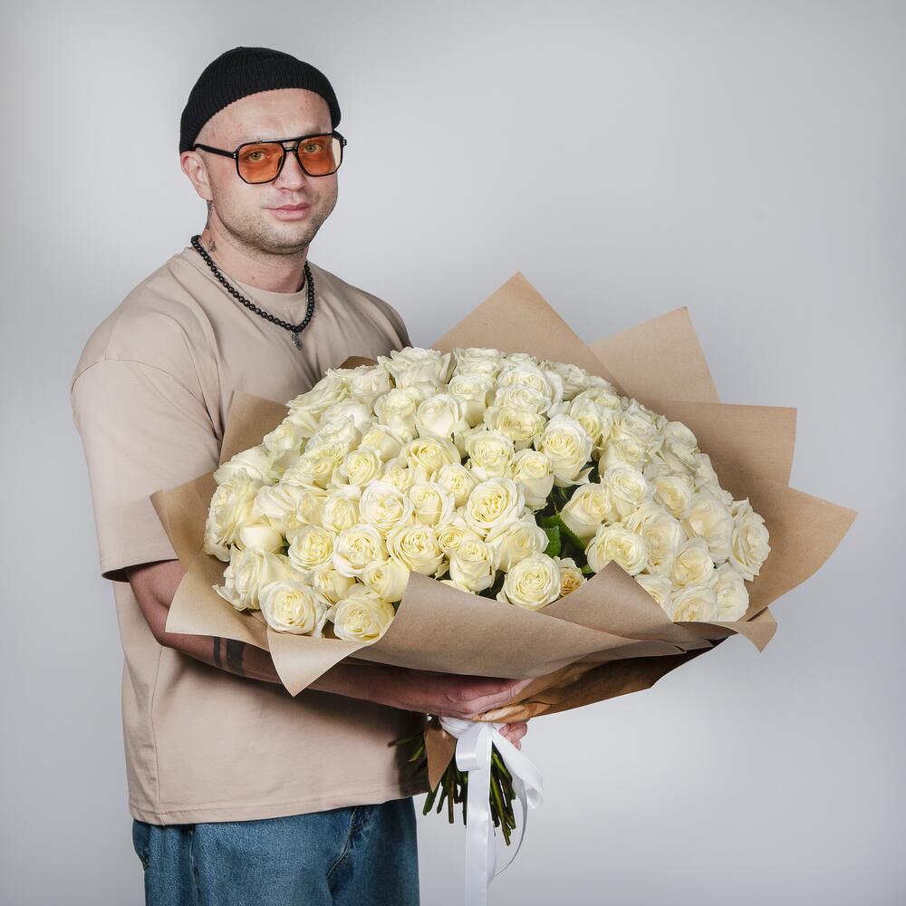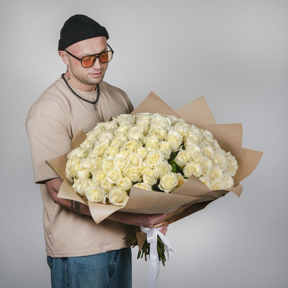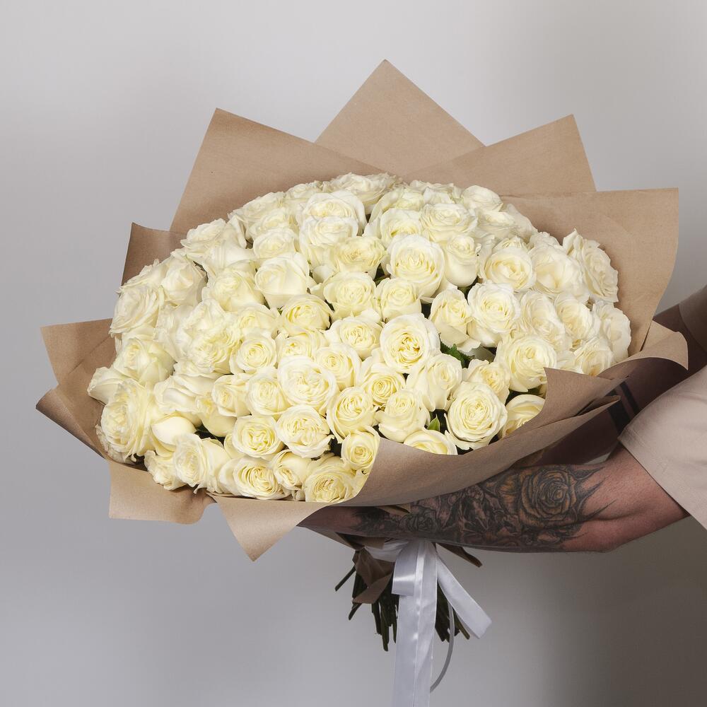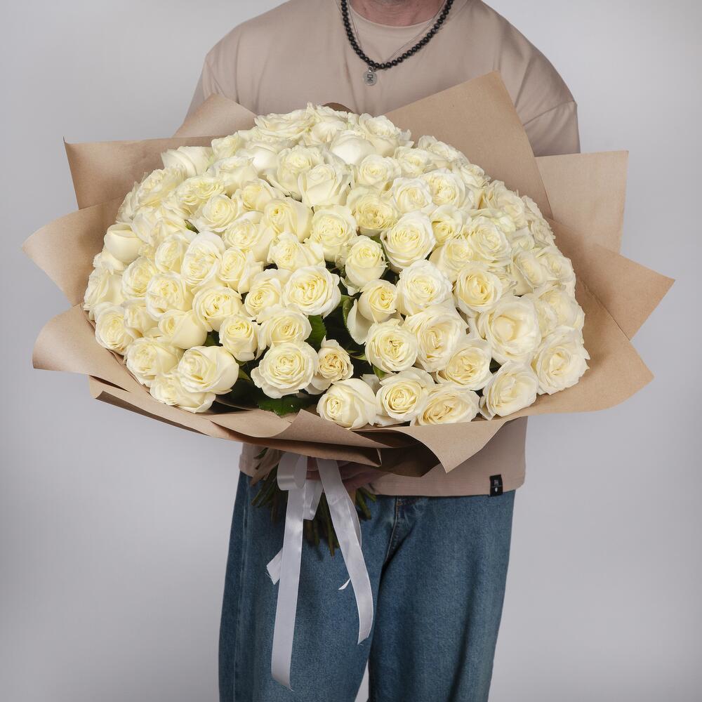 Лента атласная - 1 шт. Крафт упаковка - 1 шт. Роза белая россия 50 см - 101 шт.