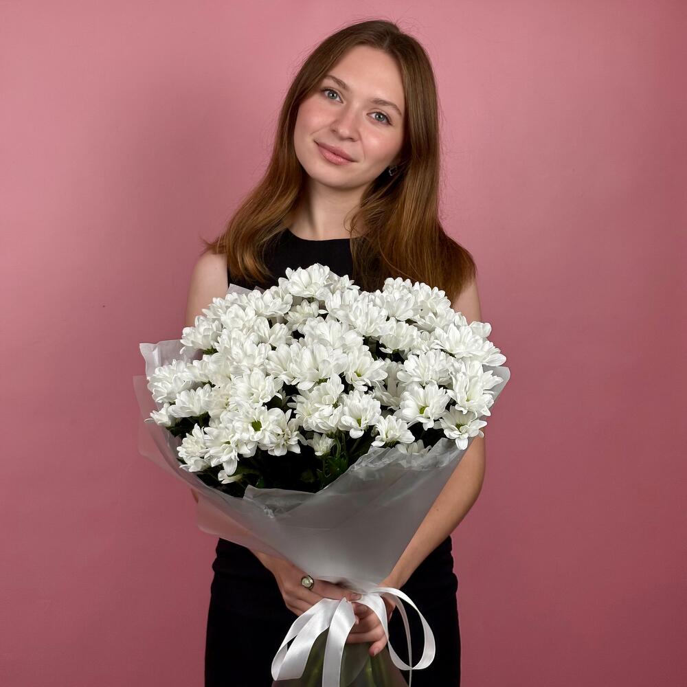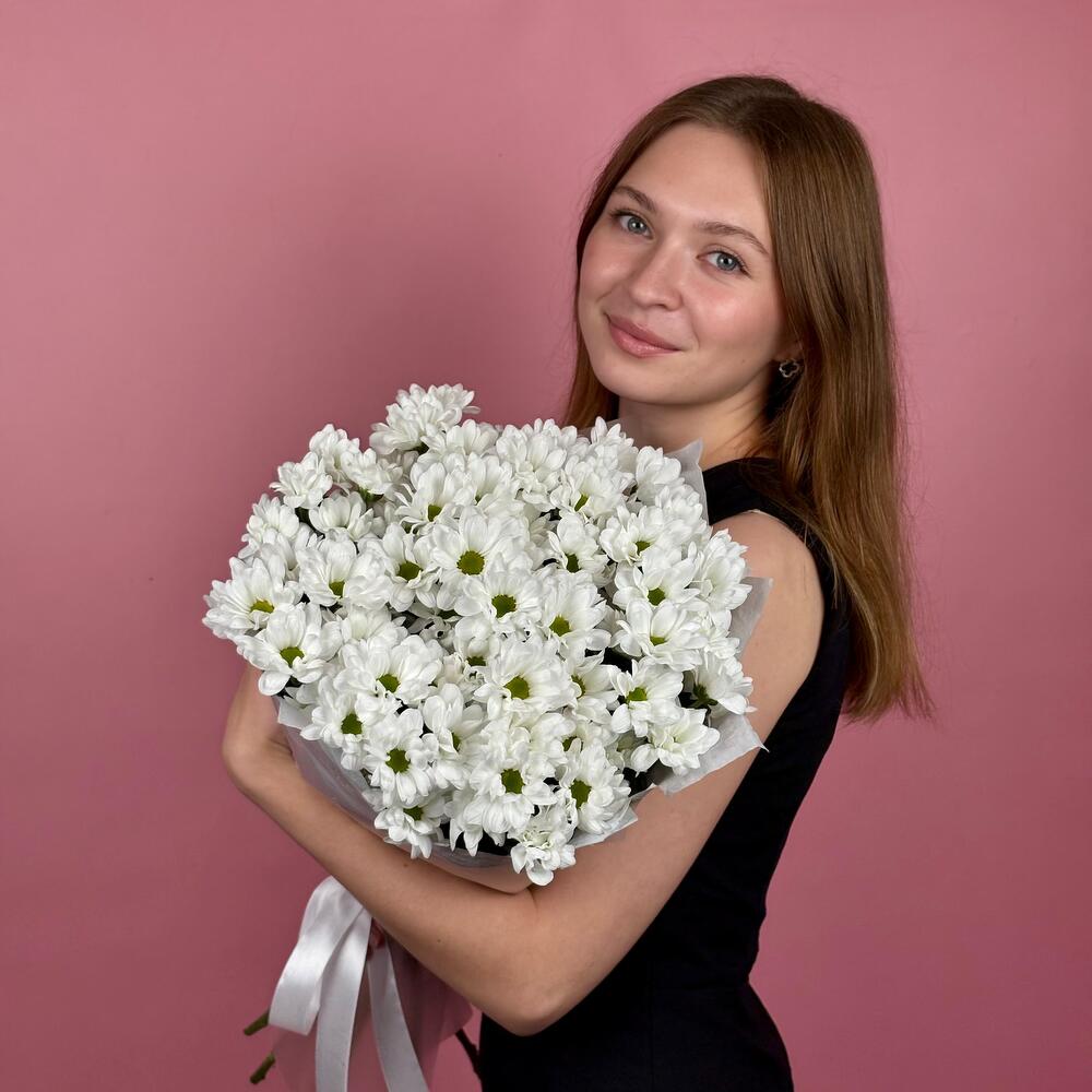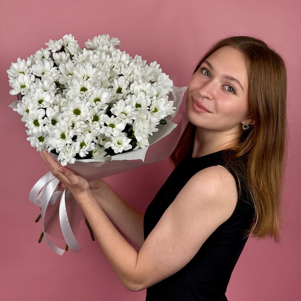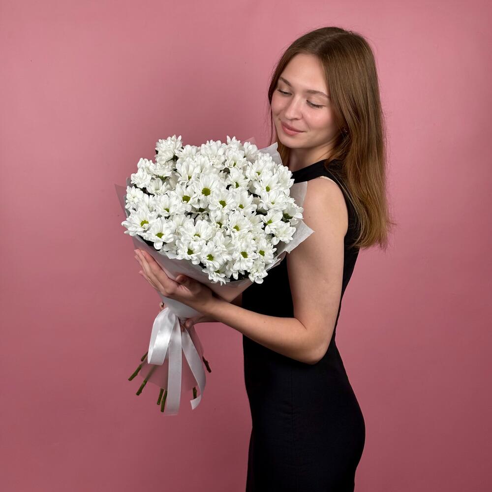 Пышный нежный букет из белых кустовых хризантем -то, что точно порадует Вашего близкого человека❤️. Ромашковая хризантема олицетворяет весну и создает прекрасное настроение. Букет, который отлично подойдет в подарок на 8 марта, день рождения, для мамы, бабушки, девушки или сестры 💕 Как сохранить свежесть букета дольше: ✅Подрежьте стебли цветов секатором или острым ножом ✅Поставьте их в вазу с большим количеством холодной воды, в которую добавлено средство для цветов ✅Подрезайте цветы и меняйте воду каждый день ✅Не ставьте цветы около отопительных приборов или на сквозняке Также в дополнение к букету Вы можете приобрести у нас открытку.