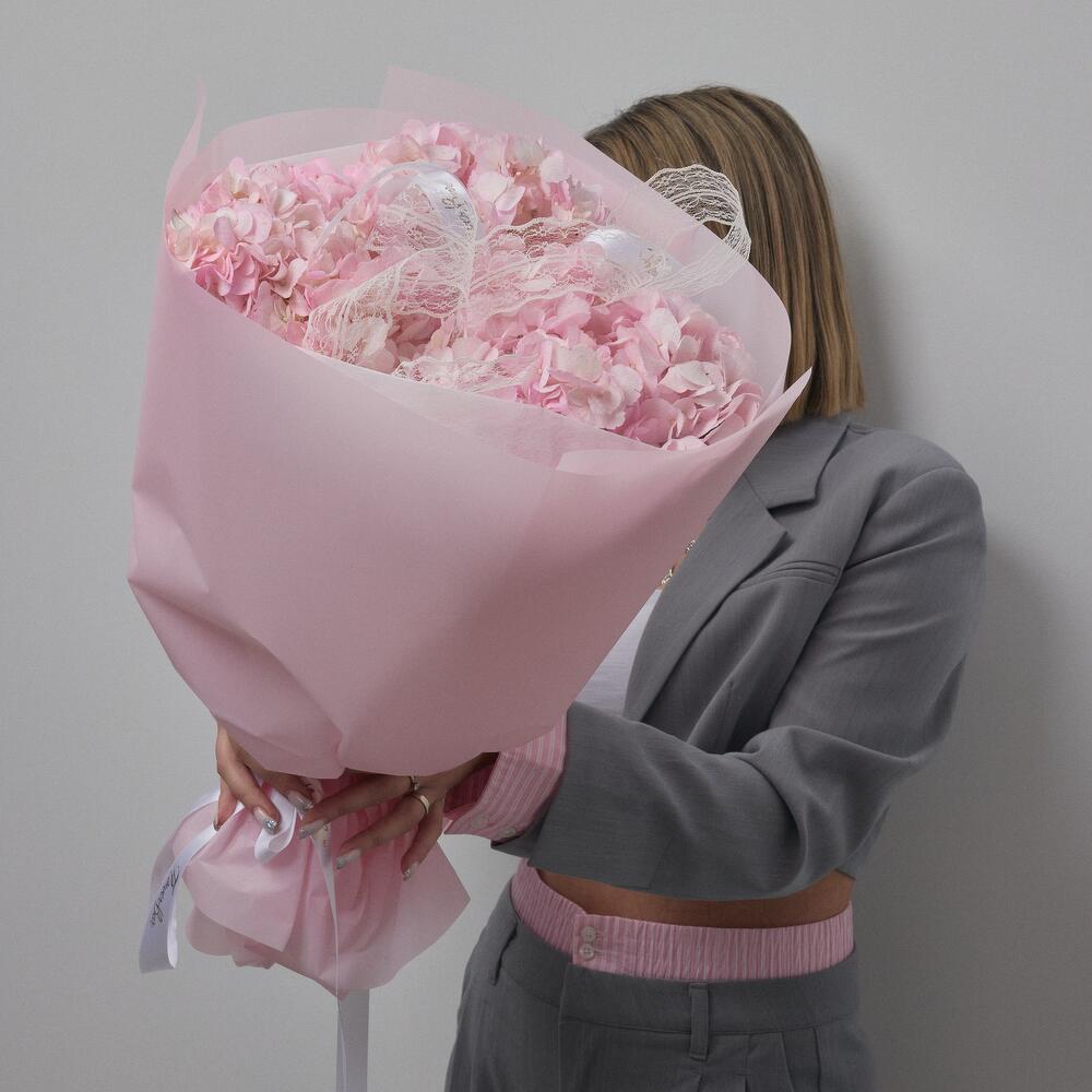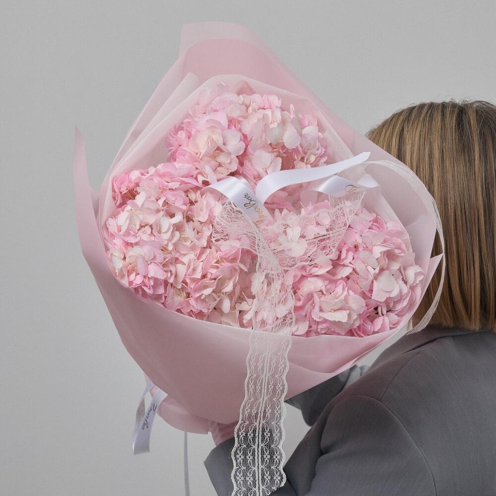 Нежный букет из 3 розовых гортензий