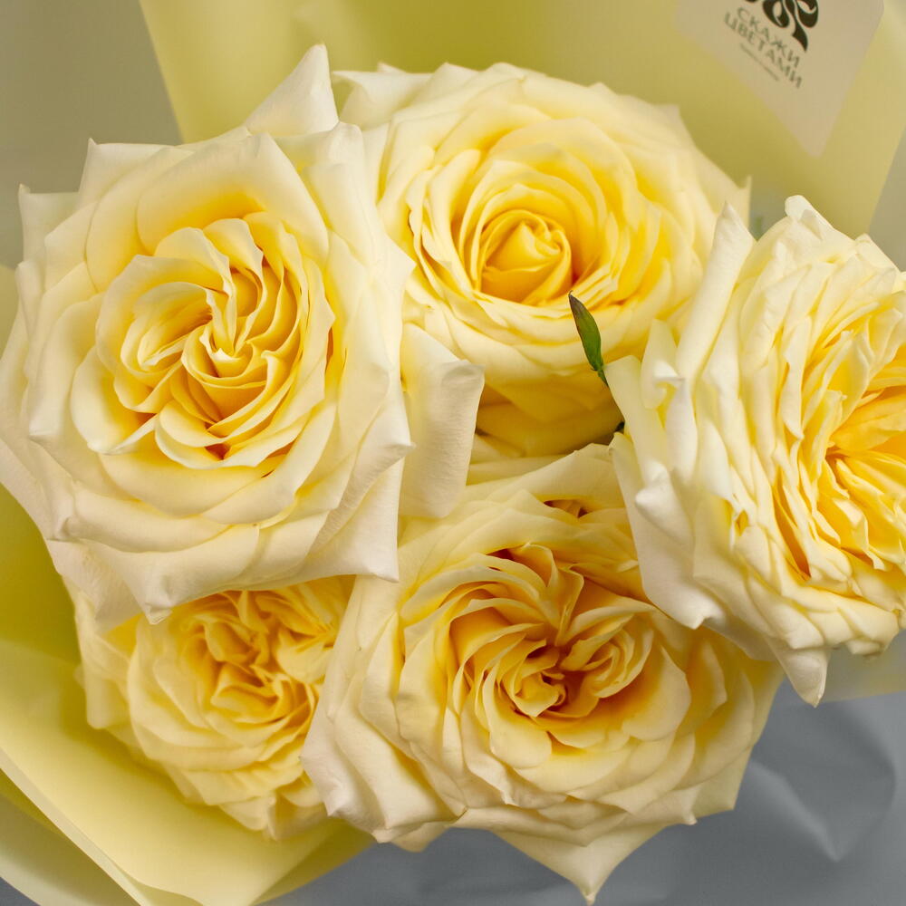 Нежный букет из пионовидных роз Кэндллайт, 5 шт