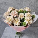 Нежный букет из шикарных французских роз Мента со скиммией