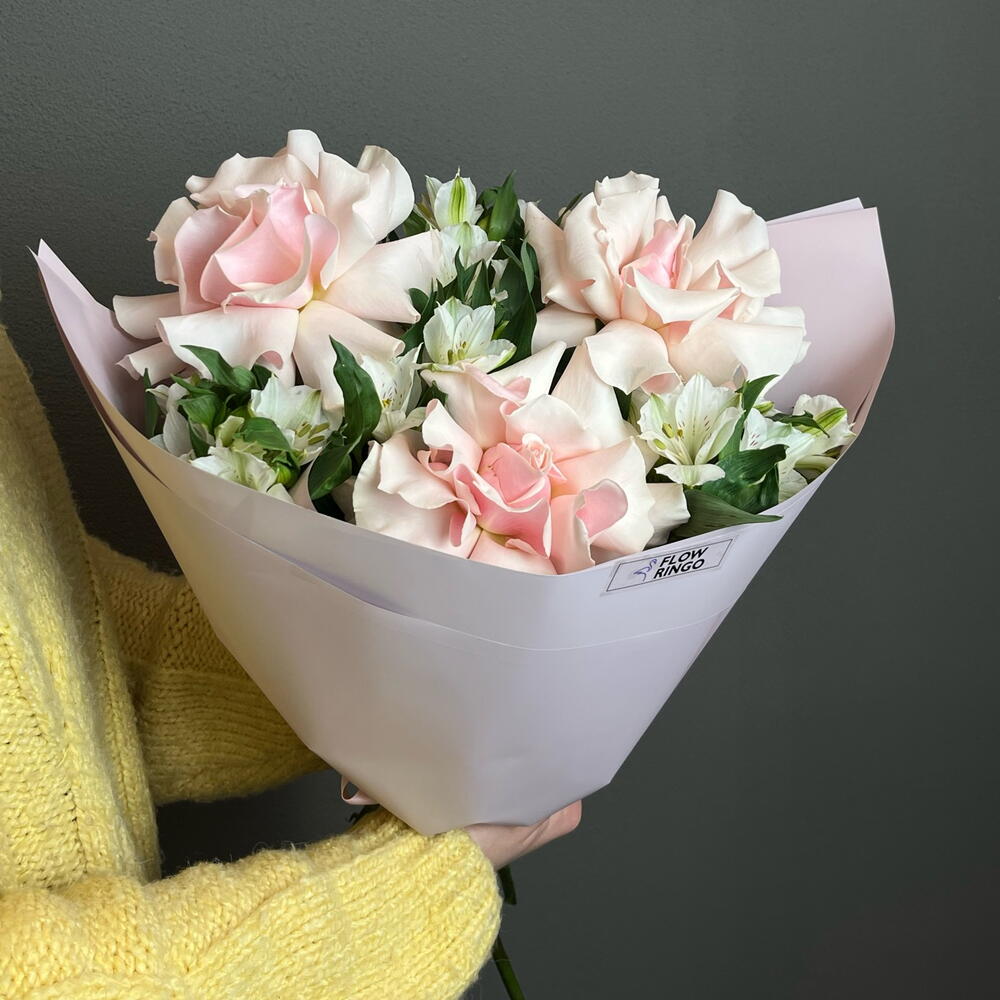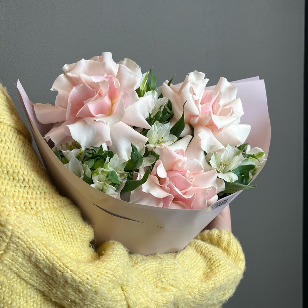 Нежный букет с французскими розами и альстромерией 3333