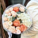 Нежный букет с пионовидными розами и гортензией