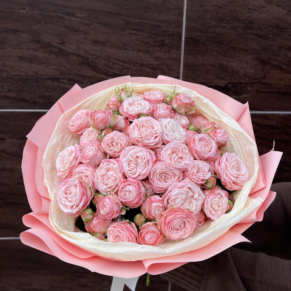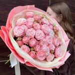 Нежный букет из кустовой пион розы 9 веток