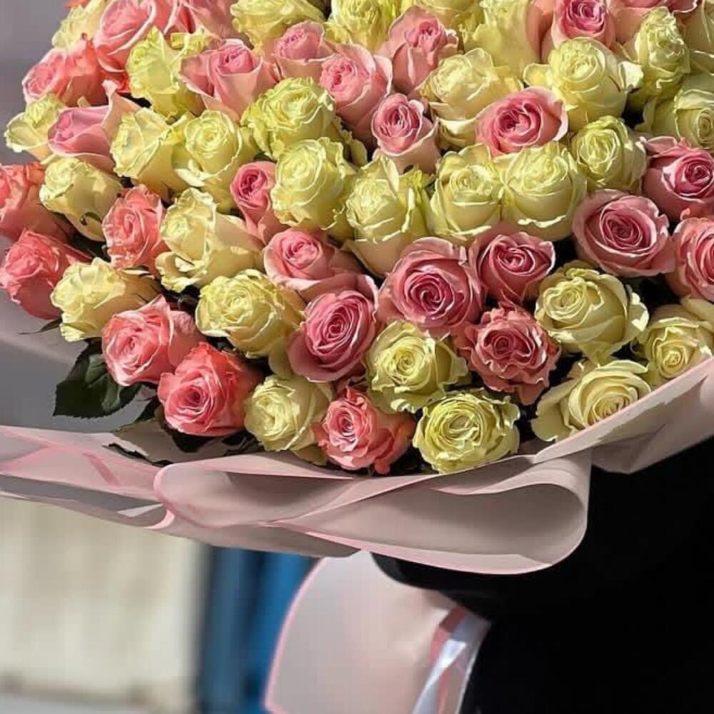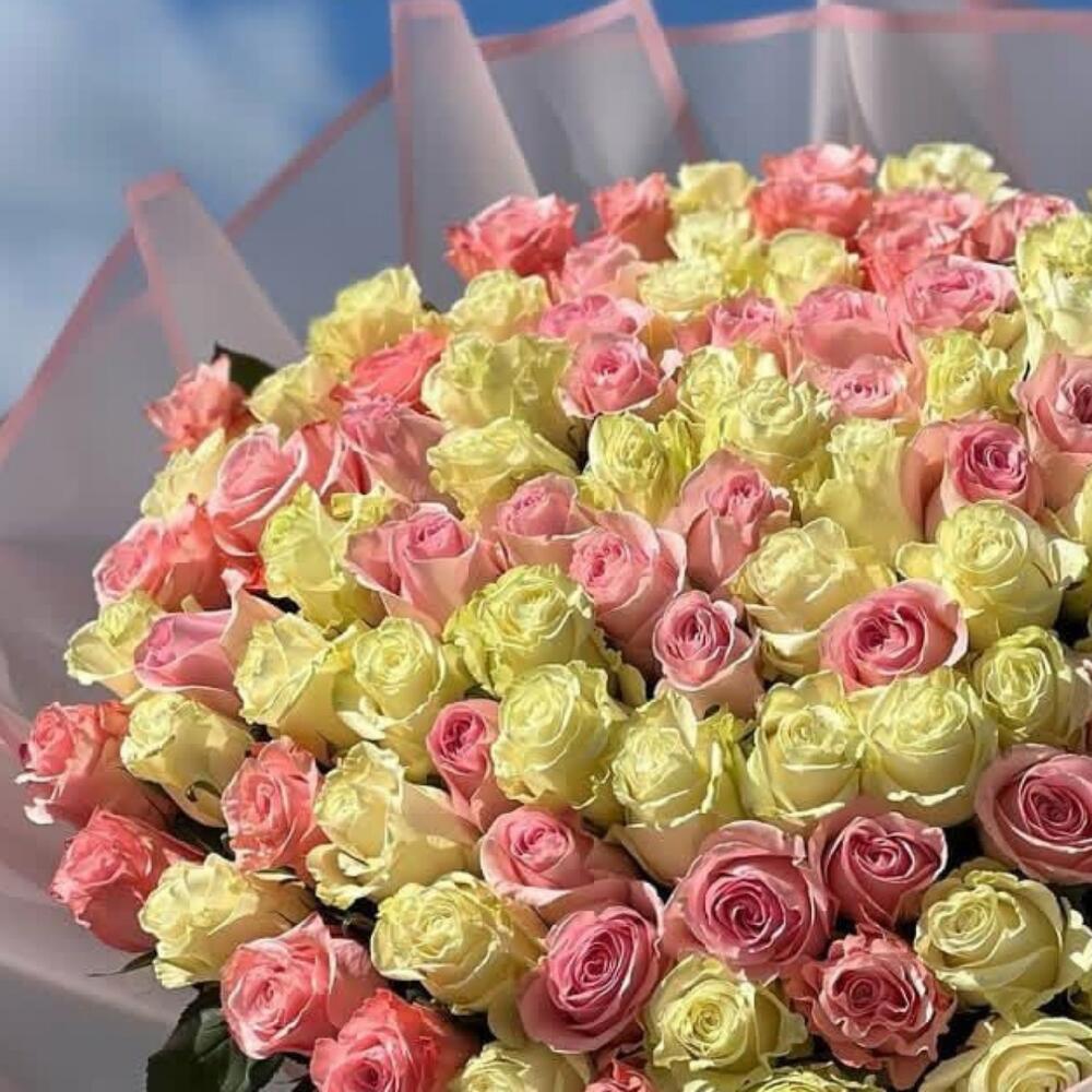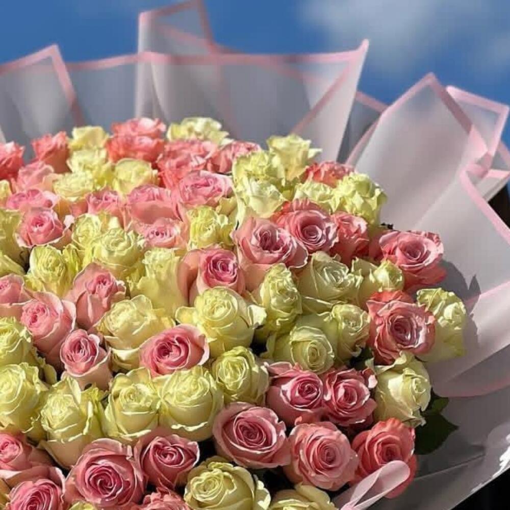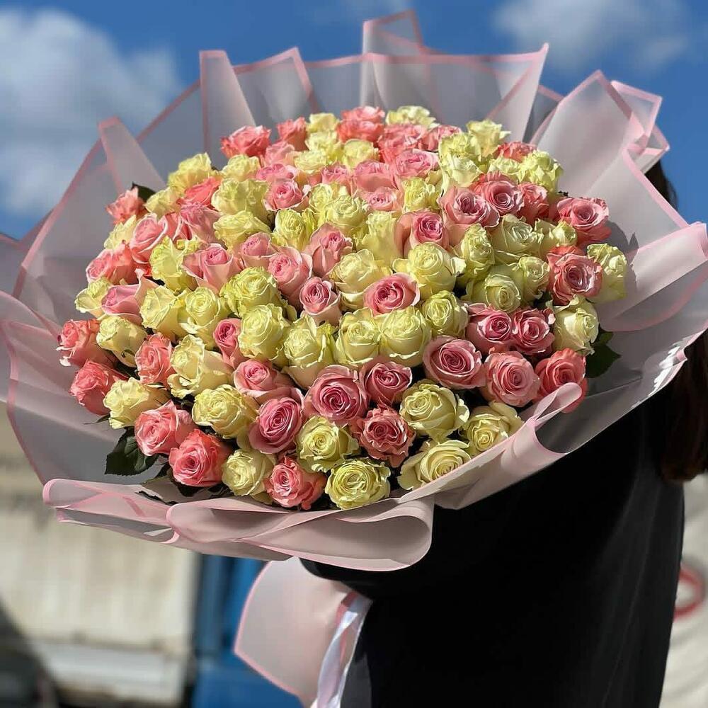 Нежный микс из 101 розы
