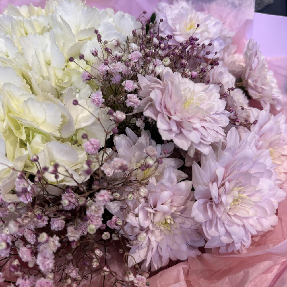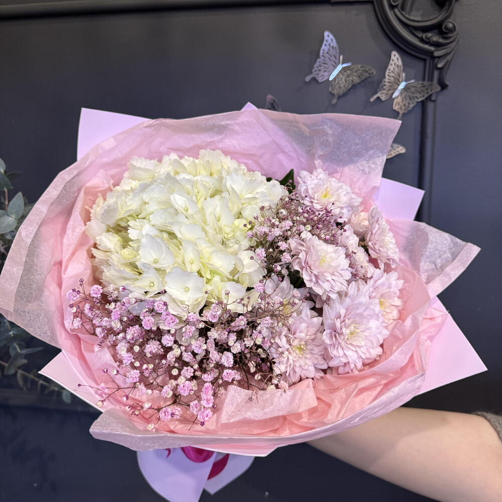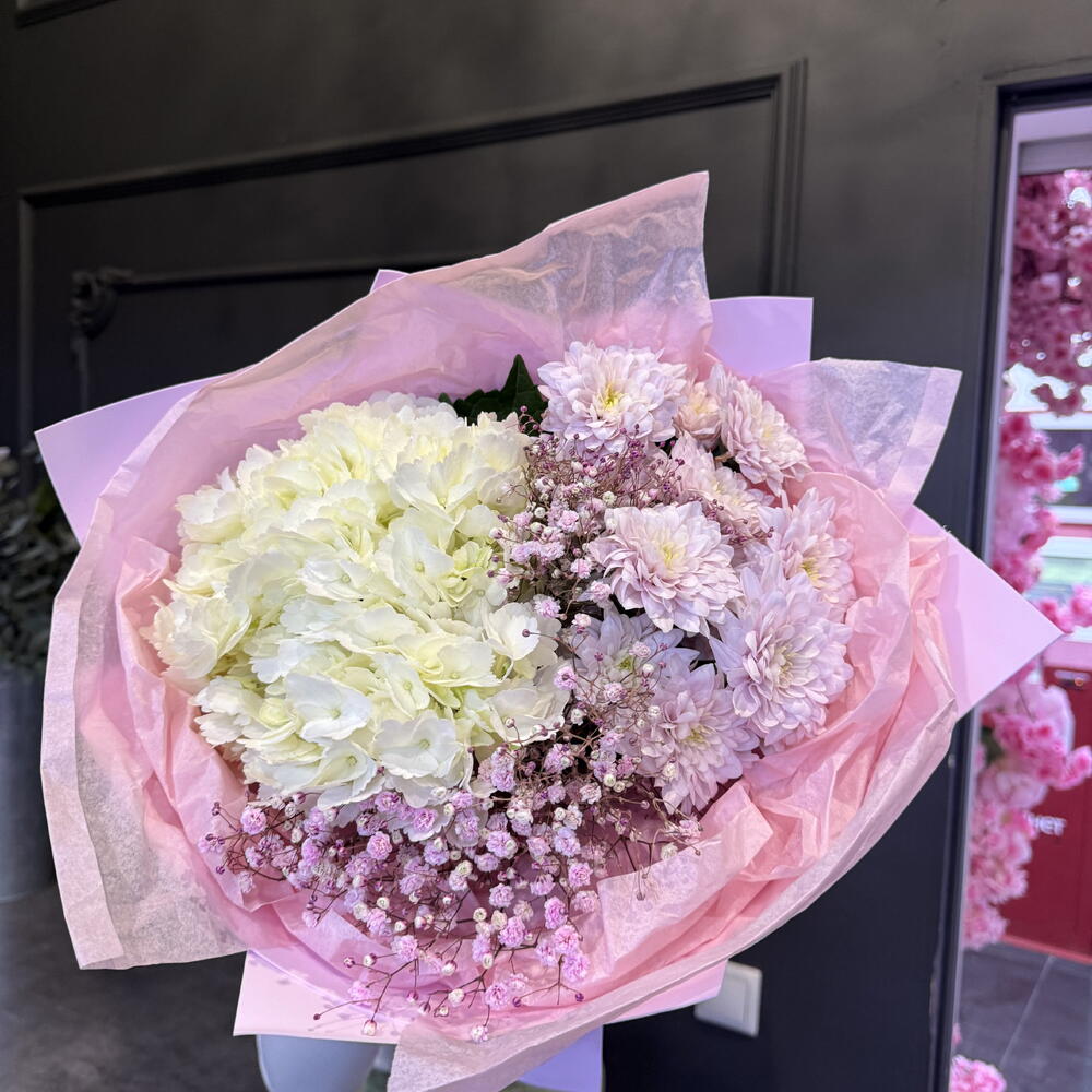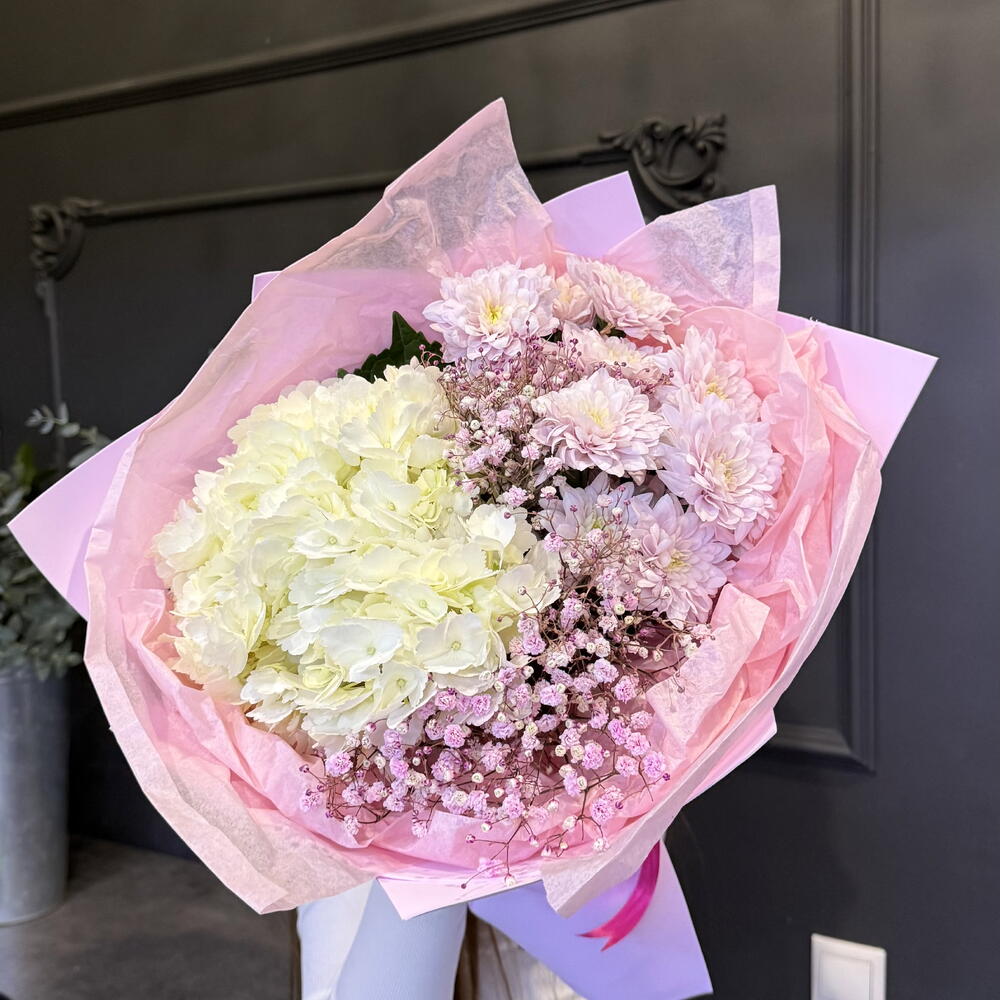 Гипсофила - 2 шт. Гортензия - 1 шт. Хризантема кустовая - 2 шт.