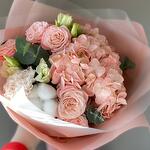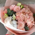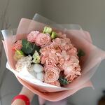 Нежность сборный букет с кустовой пионовидной розой и прекрасной персиковой гортензией