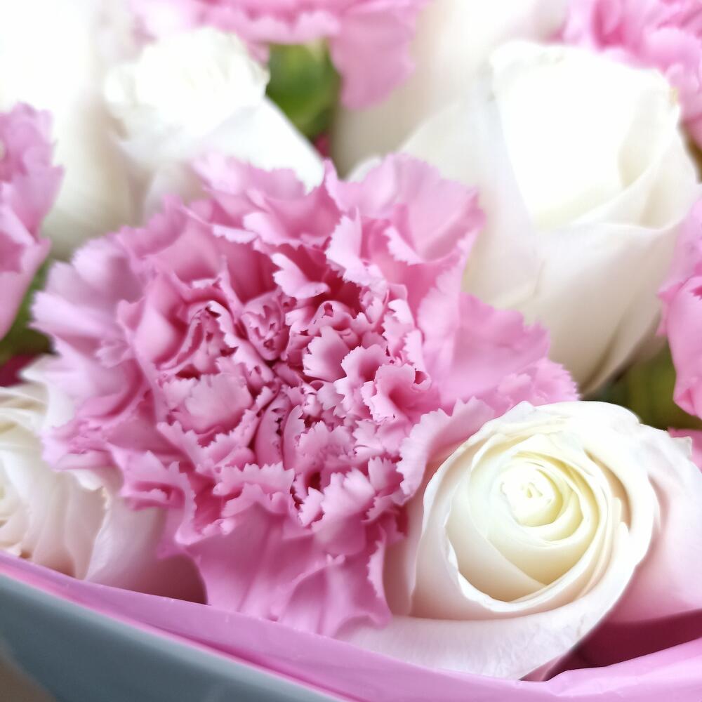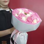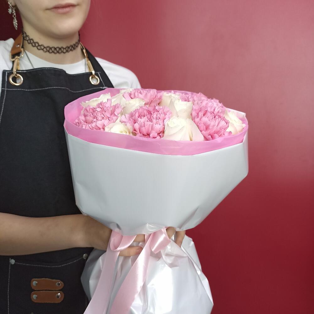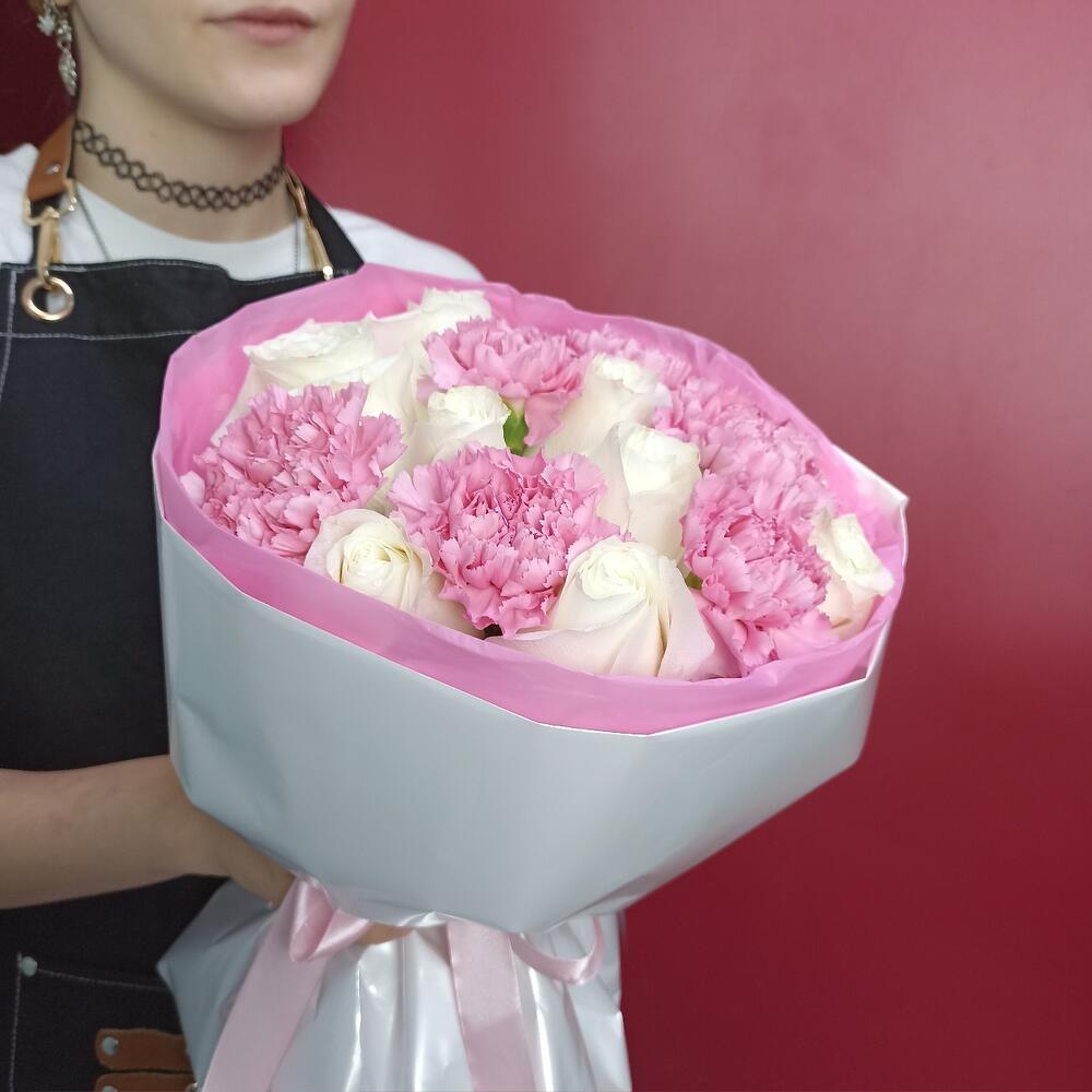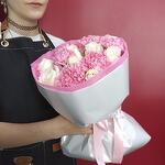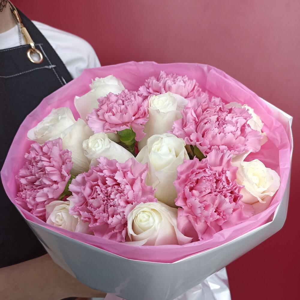 Роза - 9 шт. Упаковка - 1 шт. Диантус - 6 шт.