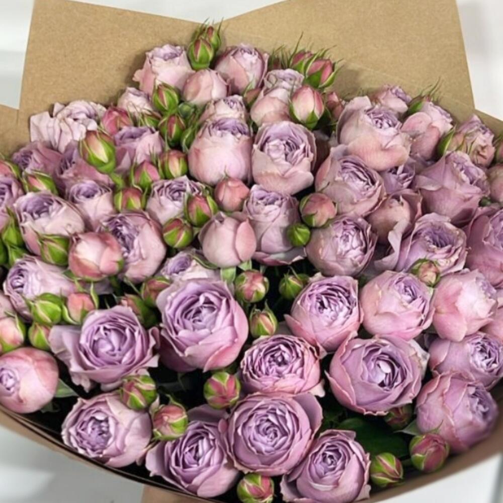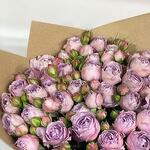 Лента атласная - 1 шт. Упаковка дизайнерская - 1 шт. Открыточка с вашими пожеланиями - 1 шт. прекрасное настроение - 1000 шт. розы кустовые пионовидные пачка - 2 шт.