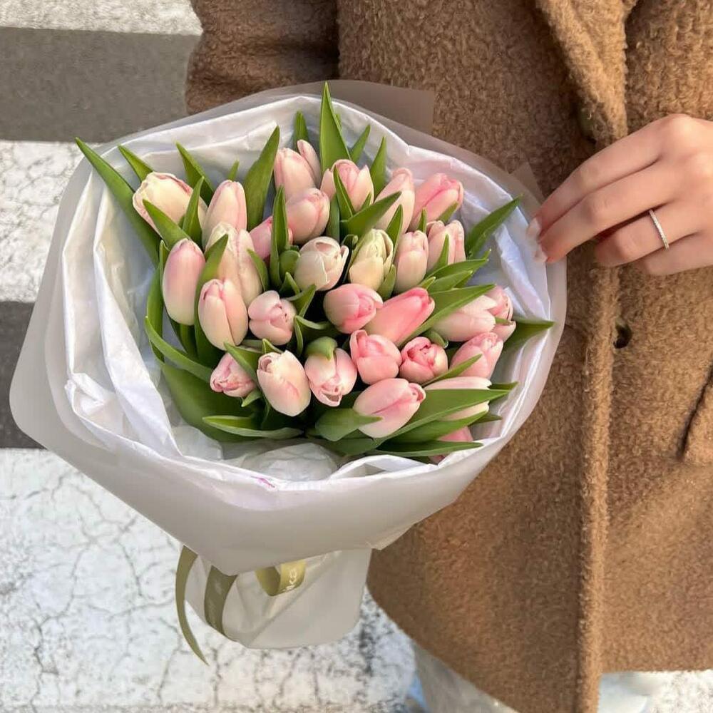 Розовые тюльпаны создают ощущение весеннего цветения. Эта красота точно тронет сердце вашей избранницы. Цветы хранятся в оптимальных условиях для сохранения свежести. Привлекательная упаковка гарантирует безупречную презентабельность. Хочется видеть качество своими глазами? • Получите фотографию своего заказа перед вручением. • Наши мастера работают исключительно вручную. Показывайте свою любовь искренне и ярко.
