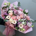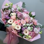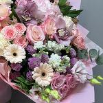 Букет получателю понравился, это самое главное. Единственный момент, для бизнес букетов хотелось бы открытки более сдержанные и менее напоминающие рекламный буклетик ) Сам букет большой, красивый и нежный.