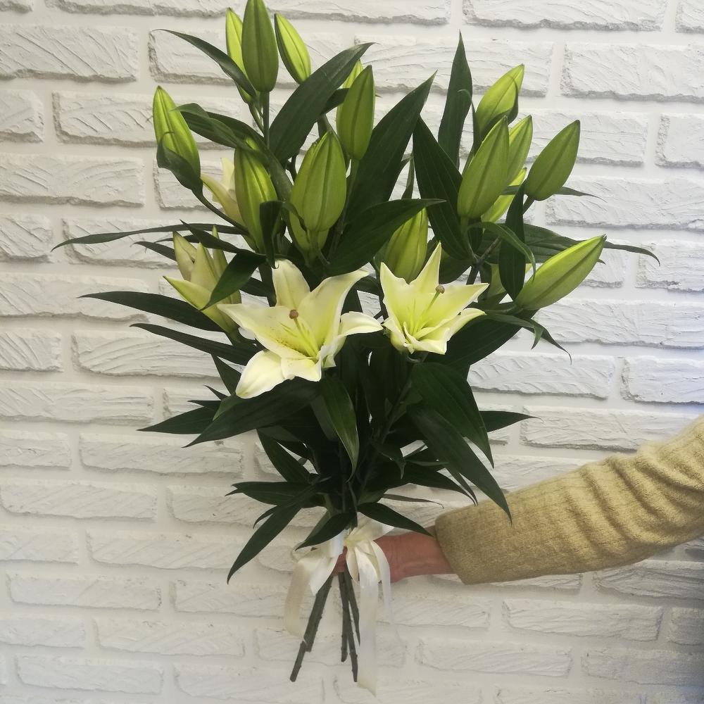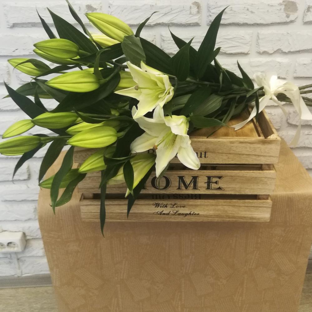 Лилии - королевские цветы. Их аромат наполнит Ваш дом, бутоны будут распускаться один за другим и долго радовать счастливого получателя, напоминая о Вас. На каждой ветке лилии в нашем букете 4 или 5 крупных бутонов. И Вы всегда можете изменить количество стеблей, добавить зелелень и упаковку. Отличный выбор для подарка о любому поводу.