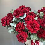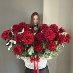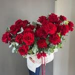 Впечатляющая композиция из красных французских роз и ароматного эвкалипта. Французские розы прекрасно заменят пионы в любое время года. Они отличаются особой стойкостью и будут радовать получателя минимум 7 дней. Подойдёт на особенный повод или просто так. Памятка по уходу за композицией: 1. Композиция не должна находиться вблизи отопительных приборов, на сквозняке и под прямыми лучами солнца 2. Композиции, выполненные с использованием флористической губки, следует поливать один раз в два дня,чтобы губка была всегда влажной С композицией мы отправляем бесплатную открытку (по Вашему желанию) и памятку по уходу за цветами. Цветочную композицию можно дополнить набором из гелиевых шаров или сладостями